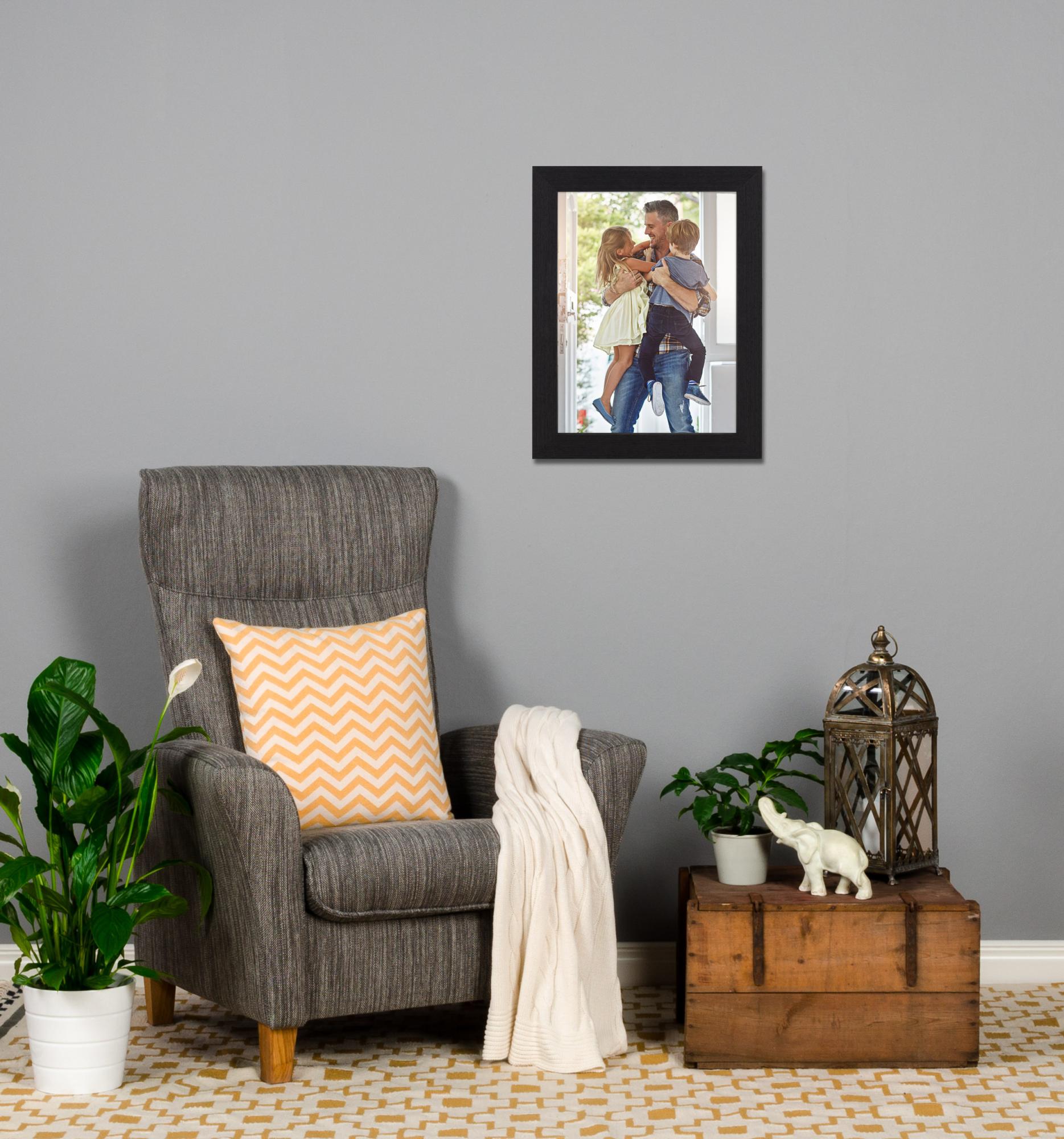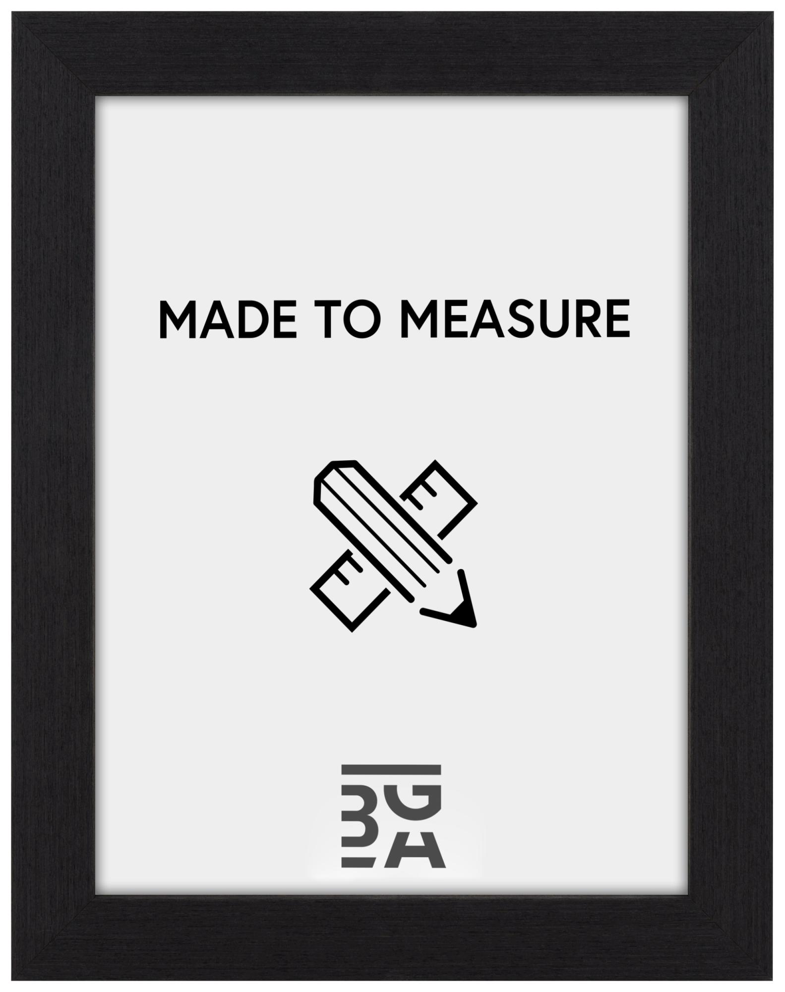 Šis pagal užsakymą pagamintas rėmelis gaminamas mūsų pačių rėmelių dirbtuvėje, tai reiškia, kad galite gauti jį tiksliai tokio dydžio, kokio pageidaujate. Rėmelio juostelė yra 39 mm pločio ir turi 52 mm gylį, kas suteikia stabilią ir tvirtą jausmą. Pagamintas iš pušies, šis rėmelis siūlo tiek ilgaamžiškumą, tiek natūralų grožį, kuris papildo jo elegantišką juodą apdailą.
