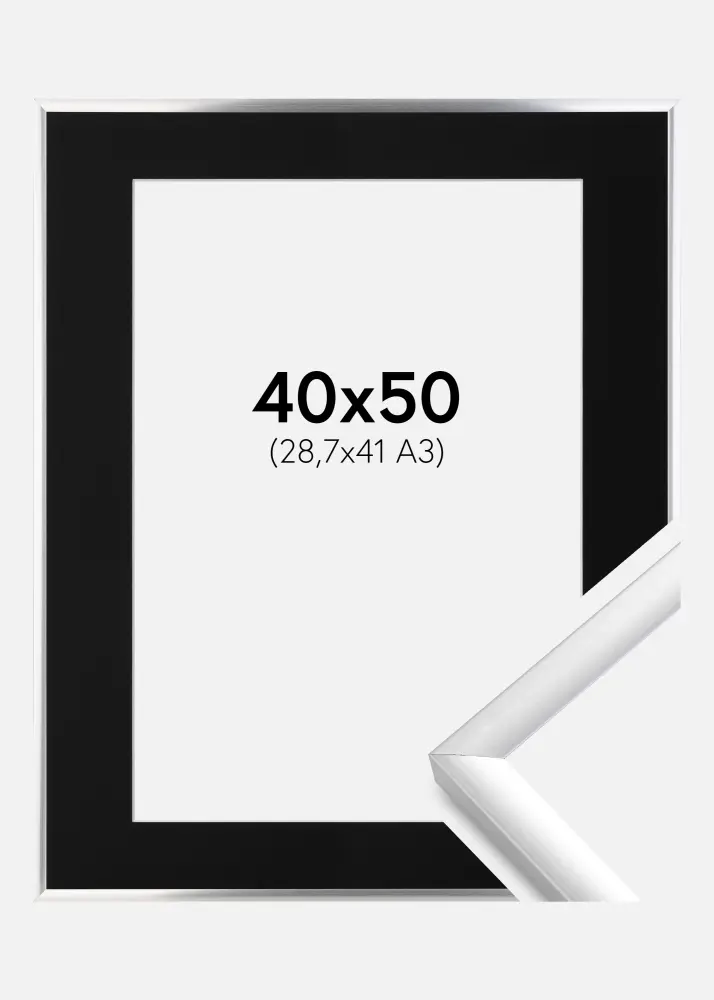 Patirkite eleganciją ir rafinuotumą su mūsų išskirtiniu sidabro spalvos rėmu, kuris turi juodą passepartout ir geriausiai paryškina jūsų A3 (29,7x42 cm) dydžio atvaizdą. Rėmo plonos profilis, kurio plotis 9,8 mm ir gylis 16,5 mm, suteikia šiuolaikišką prisilietimą jūsų meno kūriniui ar fotografijai.