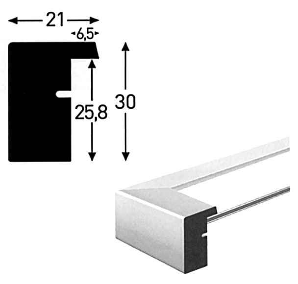 Tai stilingas baltas paveikslų rėmas su klasikiniu kvadratiniu profiliu. Rėmo 20 mm pločio juosta yra lakuota ir turi blizgų paviršių, kuris suteikia modernios išvaizdos ir puikiai dera su įvairiais motyvais. Juostos gylis yra 30 mm, tad rėmas šiek tiek išsikiša nuo sienos, sukuriant lengvą 3D efektą. Rėmas turi dosnų vidinį gylį (falsų gylis) net 25,8 mm. Tai suteikia daug vietos, kad užbaigtumėte savo rėmą su pasportu – ir iš tiesų, šis rėmas turi pasportą!