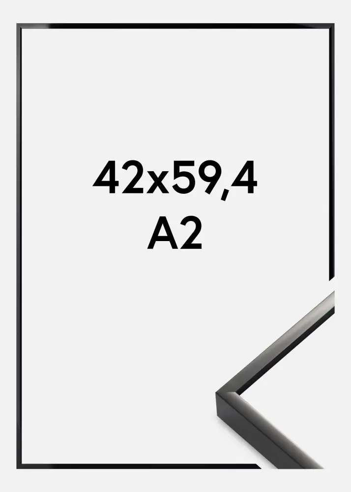 Elegantiškas aukščiausios kokybės rėmelis su blizgančiu plonu juodu rėmeliu, kuris puikiai tinka šiuolaikiniam, stilingam interjerui. Rėmo paviršius ir minimalistinis jausmas dailiame dizaine daro šį rėmelį tinkamą naudoti grafiniams plakatams ir juodai baltiems fotografijoms. Paveikslų rėmas pagamintas iš aliuminio ir yra įvairių dydžių, todėl tai yra puiki alternatyva, kai norite sukurti paveikslų sieną su įvairių formatų nuotraukomis, surištomis rėmelio pasirinkimu.