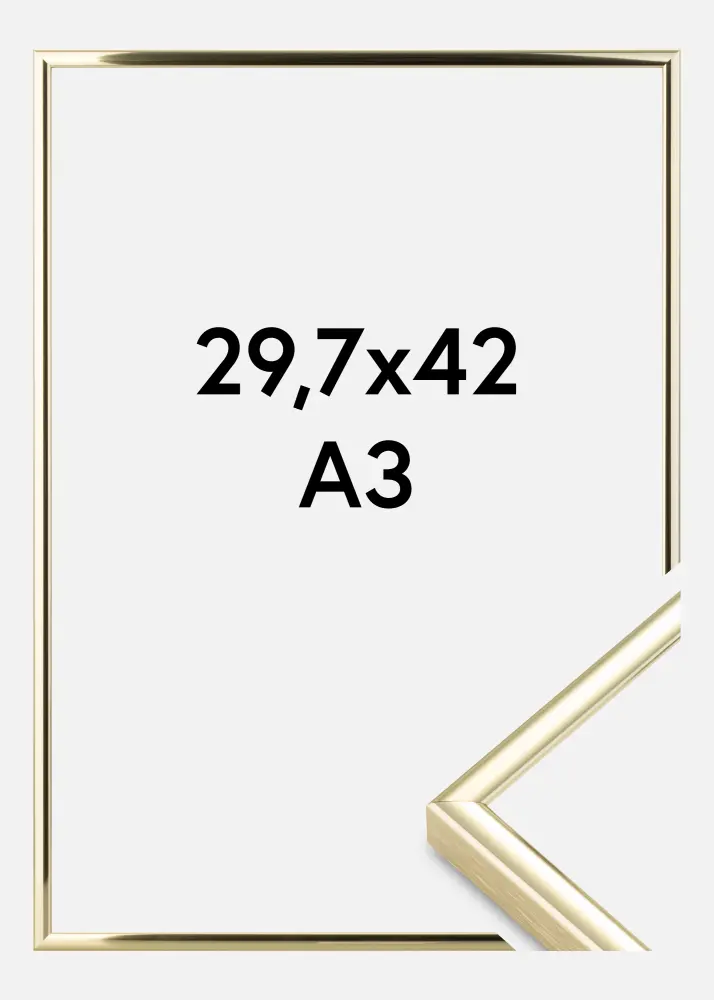 Elegantiškas blizgus aliuminio rėmas aukso spalvos su plonu profiliu moderniame dizaine. Tai yra vienas iš Nielsen geriausių aliuminio rėmų su aukšta kokybe visose detalėse. Puikiai tinka, kai ieškote gražaus rėmo, suteikiančio jūsų motyvui elegantišką įrėminimą.