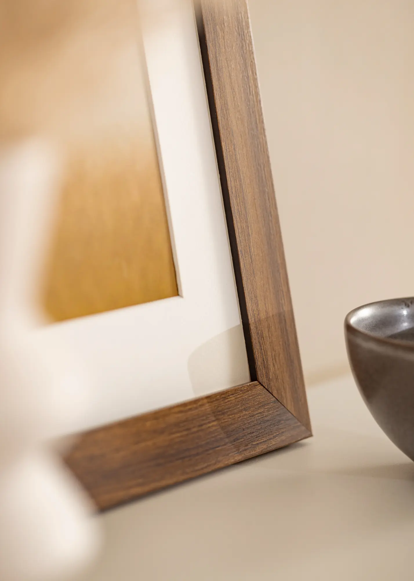 Dažyta šviesiai ruda medinė rėmas iš sujungtos pušies su plačiu 40 mm profiliu, suteikiančiu jūsų rėminimui išskirtinę jausmą ir puikiai tinkančiu didesnių motyvų rėminimui.