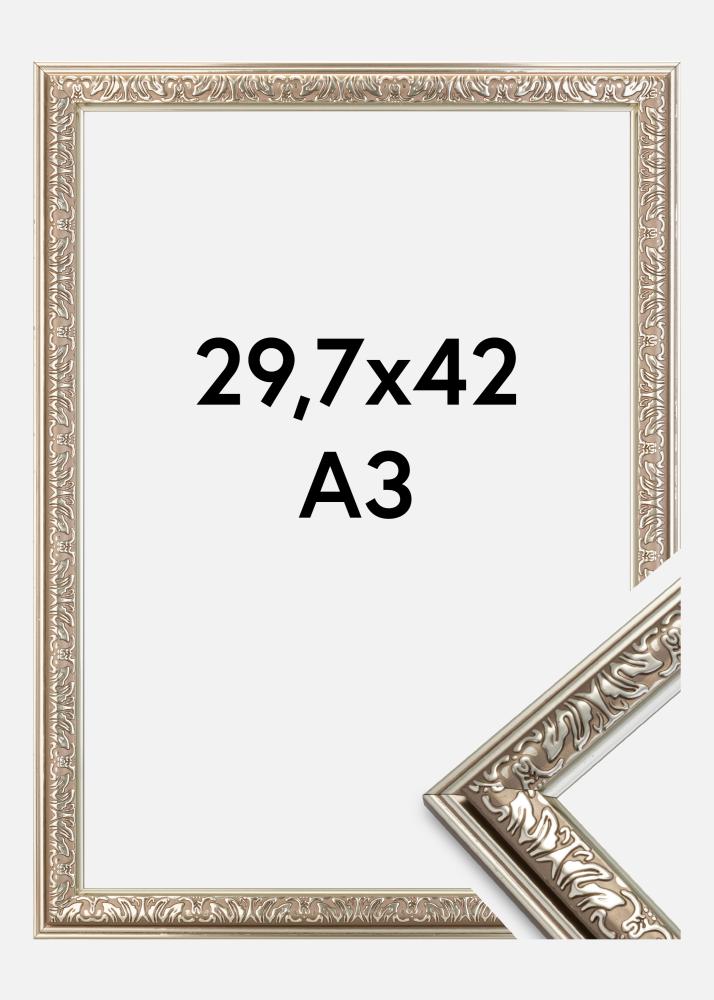 Nostalgija yra stilingas sidabrinis rėmas retro stiliuje su gražiais puošniais elementais. Puikiai tinka, kai ieškote plataus retro rėmo savo gražiausiems paveikslams.
