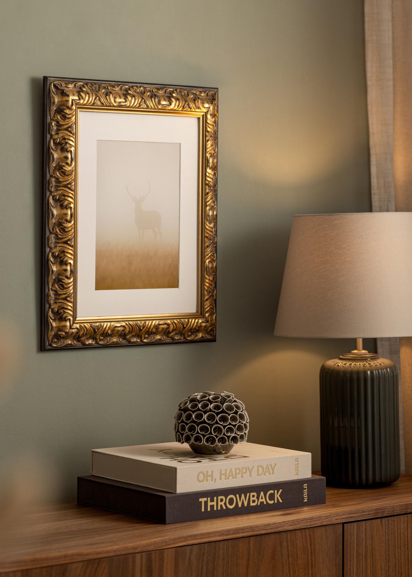 Mūsų pagal užsakymą pagamintas paveikslų rėmas Odin iš aukso ir juodos spalvos yra puikus pasirinkimas tiems, kurie ieško elegantiško ir klasikinio įrėminimo. Su savo aukso apdaila ir juodais akcentais, šis nuotraukų rėmas siūlo antikos pojūtį, kuris pagerina kiekvieną meno kūrinį ar fotografiją. Ornamentuotas dizainas sukuria gražų kontrastą tarp šilto aukso ir gilių juodų detalių, suteikiant stilingą ir tradicinę išvaizdą.