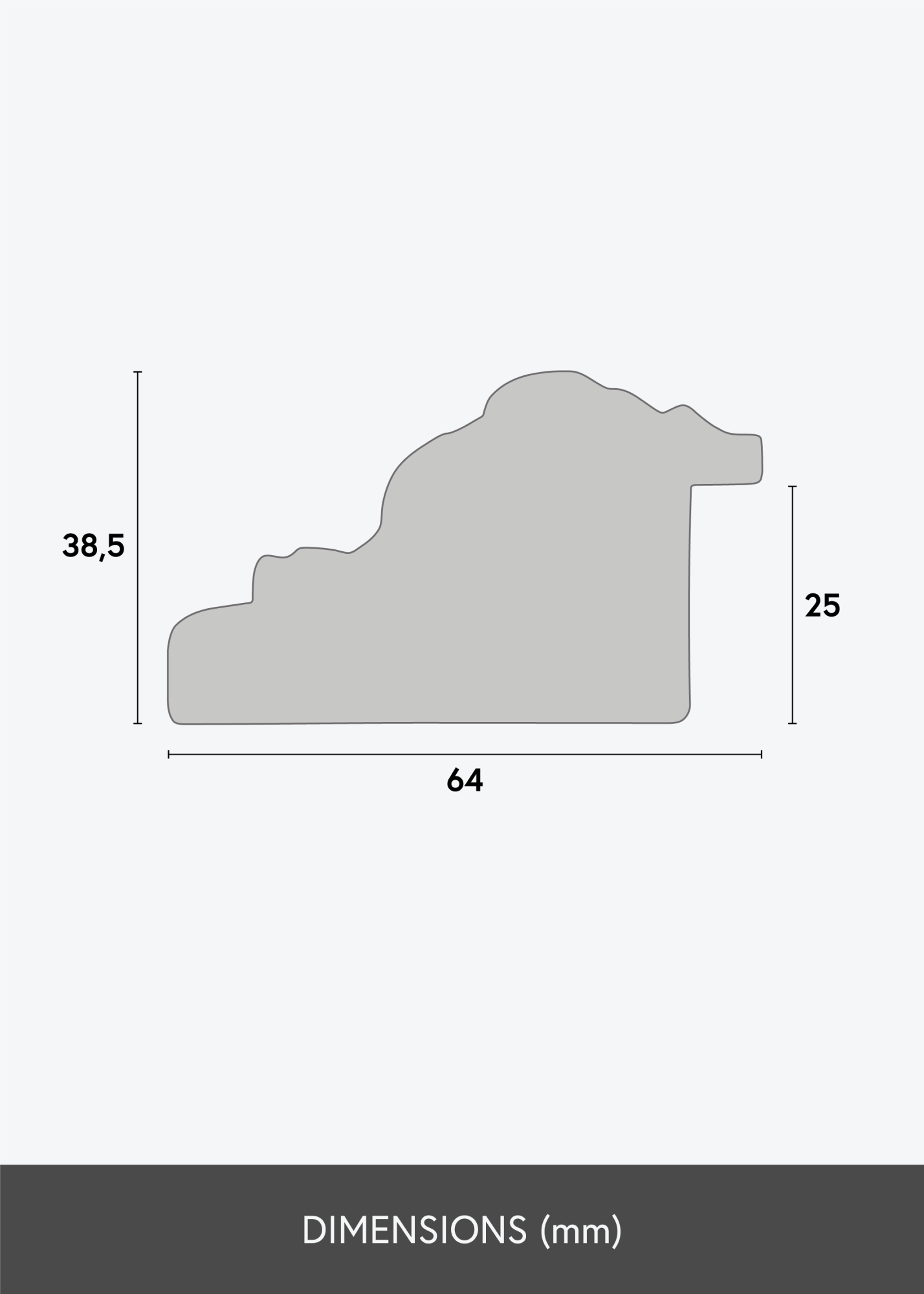 Rėmo plotis yra 64 mm ir gylis 38,5 mm, todėl jis yra tiek tvirtas, tiek įspūdingas. Pagamintas iš pušies, šis rėmas yra tvirtas ir aukštos kokybės. Kadangi rėmą gaminame savo rėmų dirbtuvėje, galite būti tikri, kad kiekviena detalė kruopščiai apgalvota, kad suteiktų jūsų namams ar biurui išskirtinį prisilietimą.