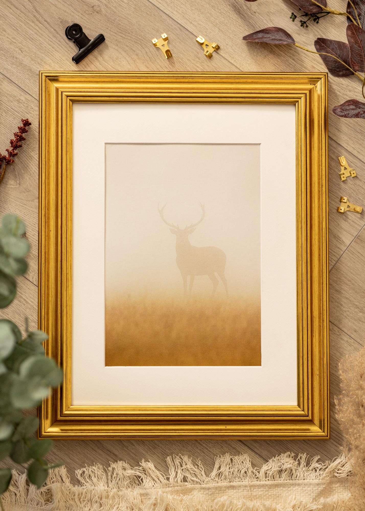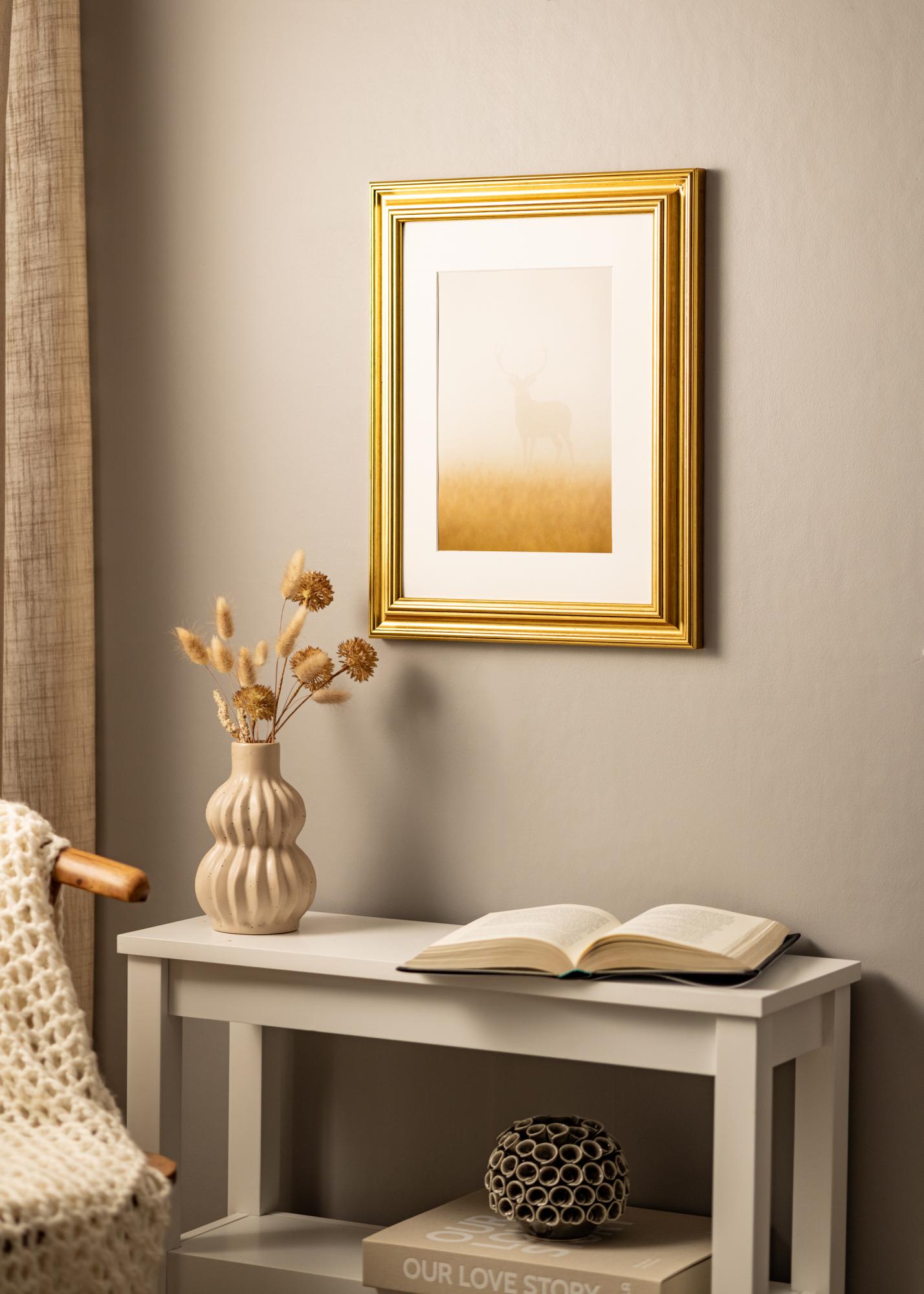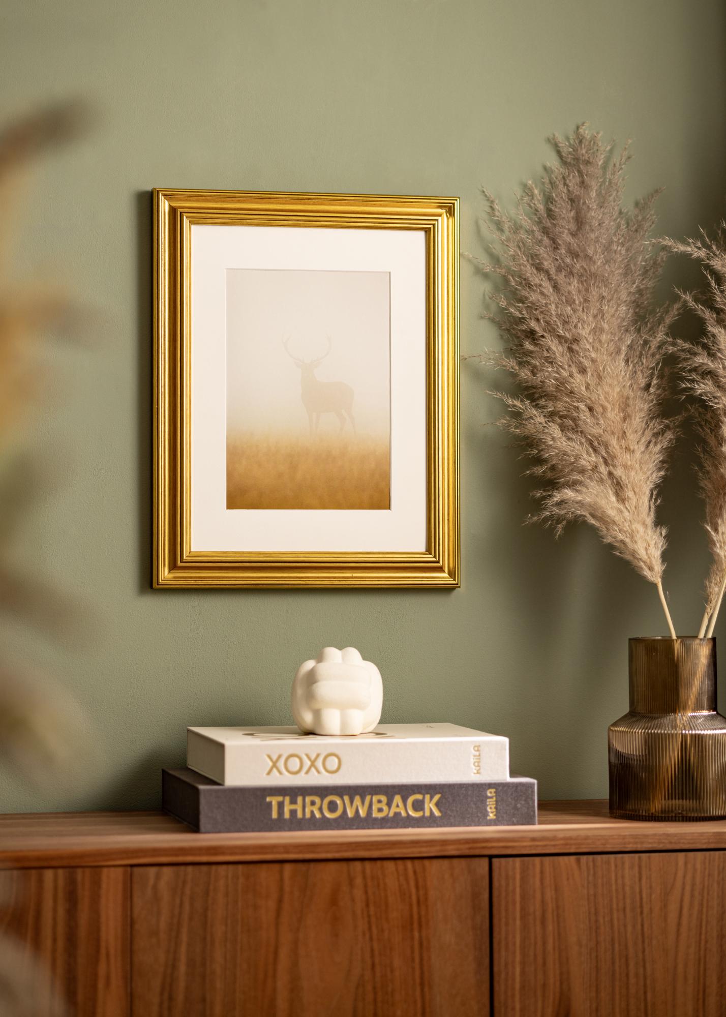 Išskirtinė klasikinio profilio auksinės spalvos medžio rėmas su rankomis tapytu jausmu, kuri suteikia rėmui gyvumo ir malonų blizgesį. Stilingas rėmas kraštovaizdžio tapybai, portretams ir natiurmortams įrėminti, arba kodėl gi ne sukurti įdomų kontrastą su grafiškai paprastu plakatu. Auksinės spalvos rėmai puikiai tinka tiek antikvariniame namuose, tiek miesto bute, norint suteikti elegantišką prisilietimą. Pakabinkite kelis skirtingo stiliaus paveikslus su auksiniais rėmais kartu, kad sukurtumėte paveikslų sieną.
