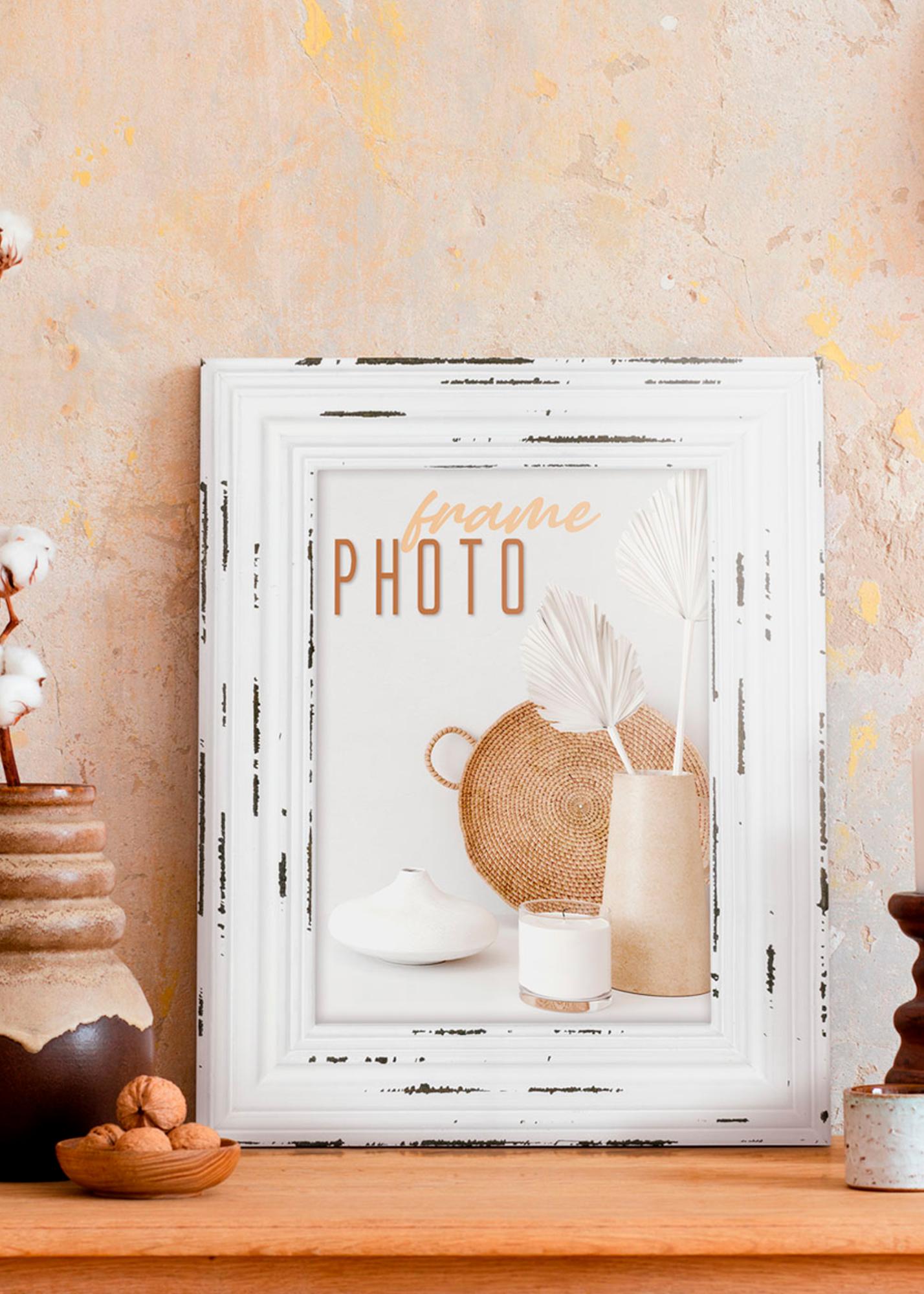 Suteikite savo prisiminimams unikalų įrėminimą su šiuo žavingu vintažinio stiliaus nuotraukų rėmeliu. Jo matmenys 15x20 cm puikiai tinka išryškinti jūsų mėgstamas nuotraukas. Nusitrynusi balta danga, papildyta tamsiais intarpais, suteikia autentišką praeities laikų pojūtį ir prideda charakterio jūsų interjerui.