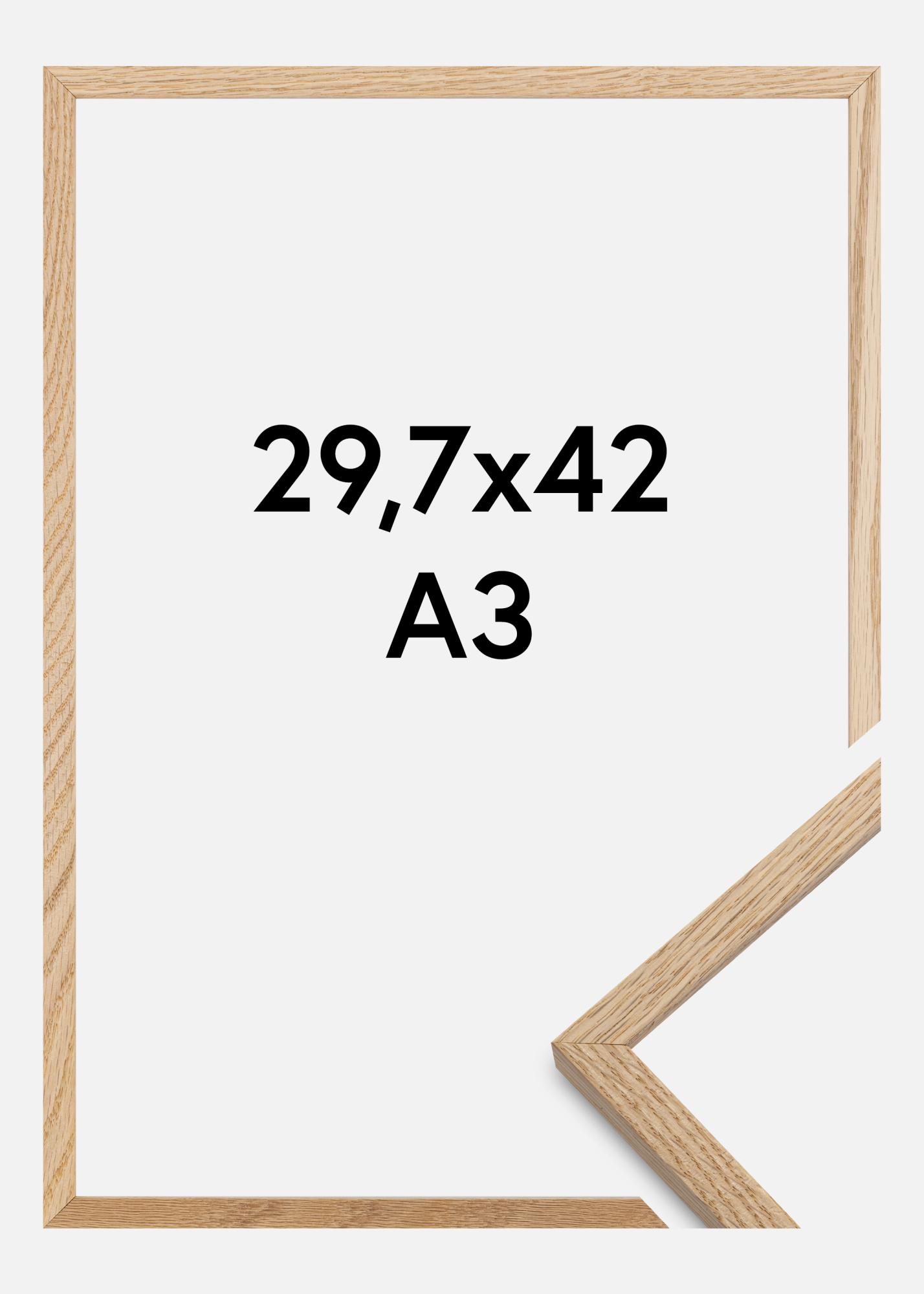 Solidus ąžuolo rėmas A3 formato su kvadrato formos rėmo profiliu. Rėmas tiekiamas su krištolo skaidrumo akriliniu stiklu, kuris yra nesudaužomas, todėl rėmas yra lengvesnis.