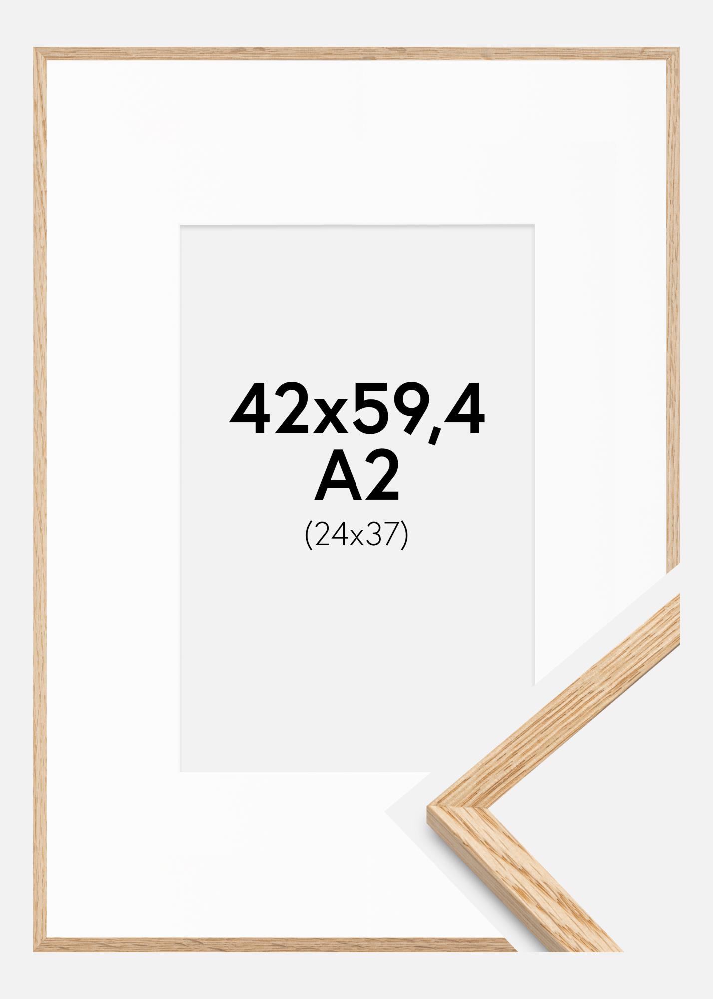 Rėmas Plonas ąžuolinis 42x59,4 cm (A2) - Paspartu Baltas 25x38 cm