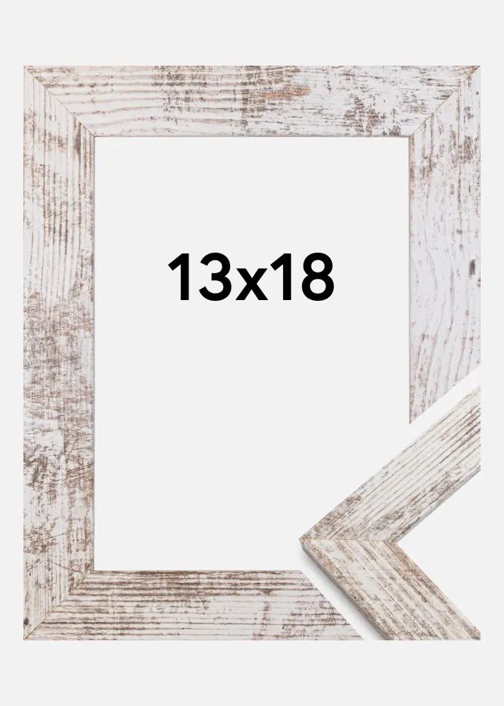 Stilingas vintažinis rėmas su plačiu rėmo profiliu, turinčiu nusidėvėjusią išvaizdą balto ir medžio spalvose. Suteikia papildomos dimensijos jūsų nuotraukoms ir puikiai tinka, kai norite tikros vintažinės jausenos rėmo.