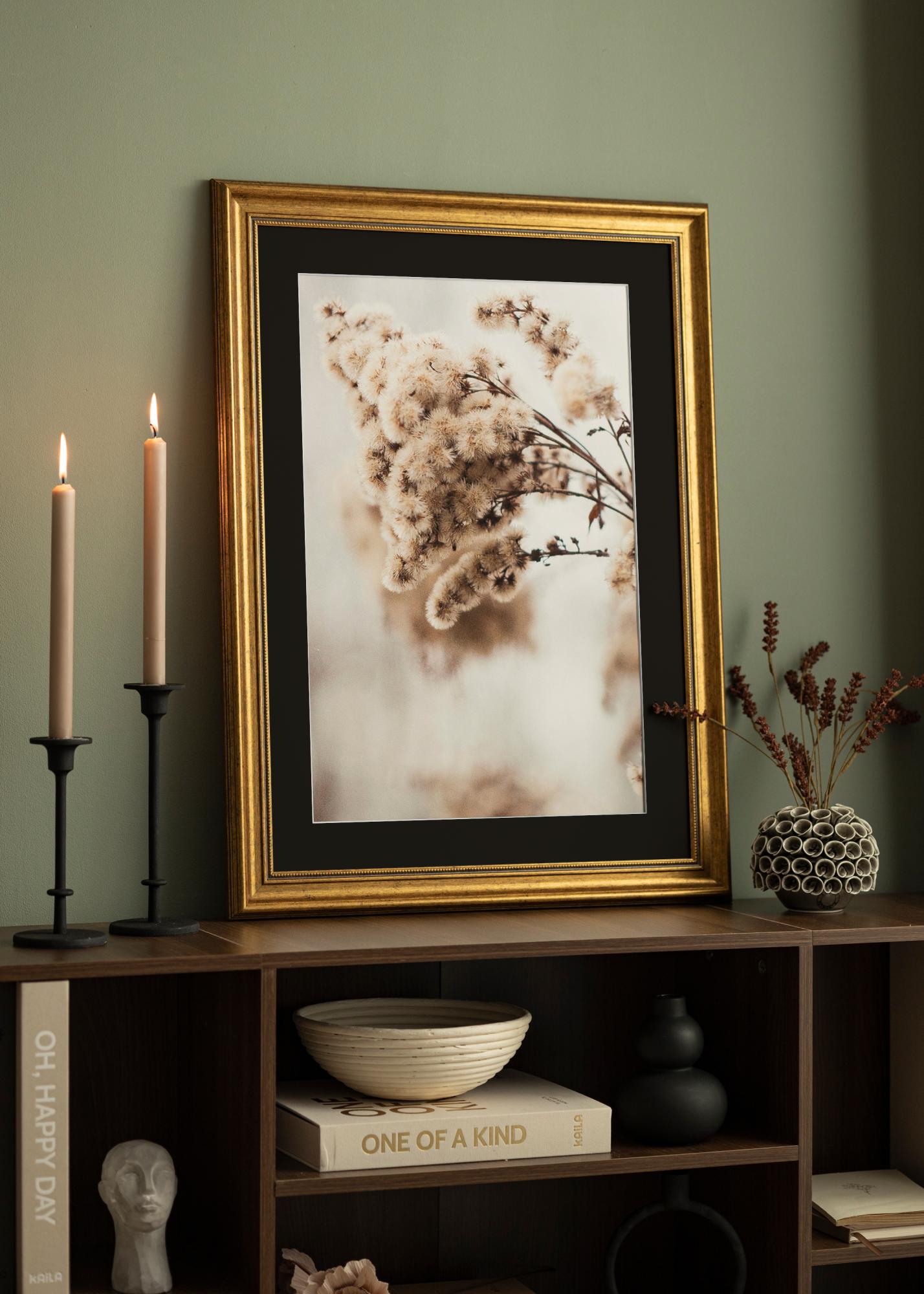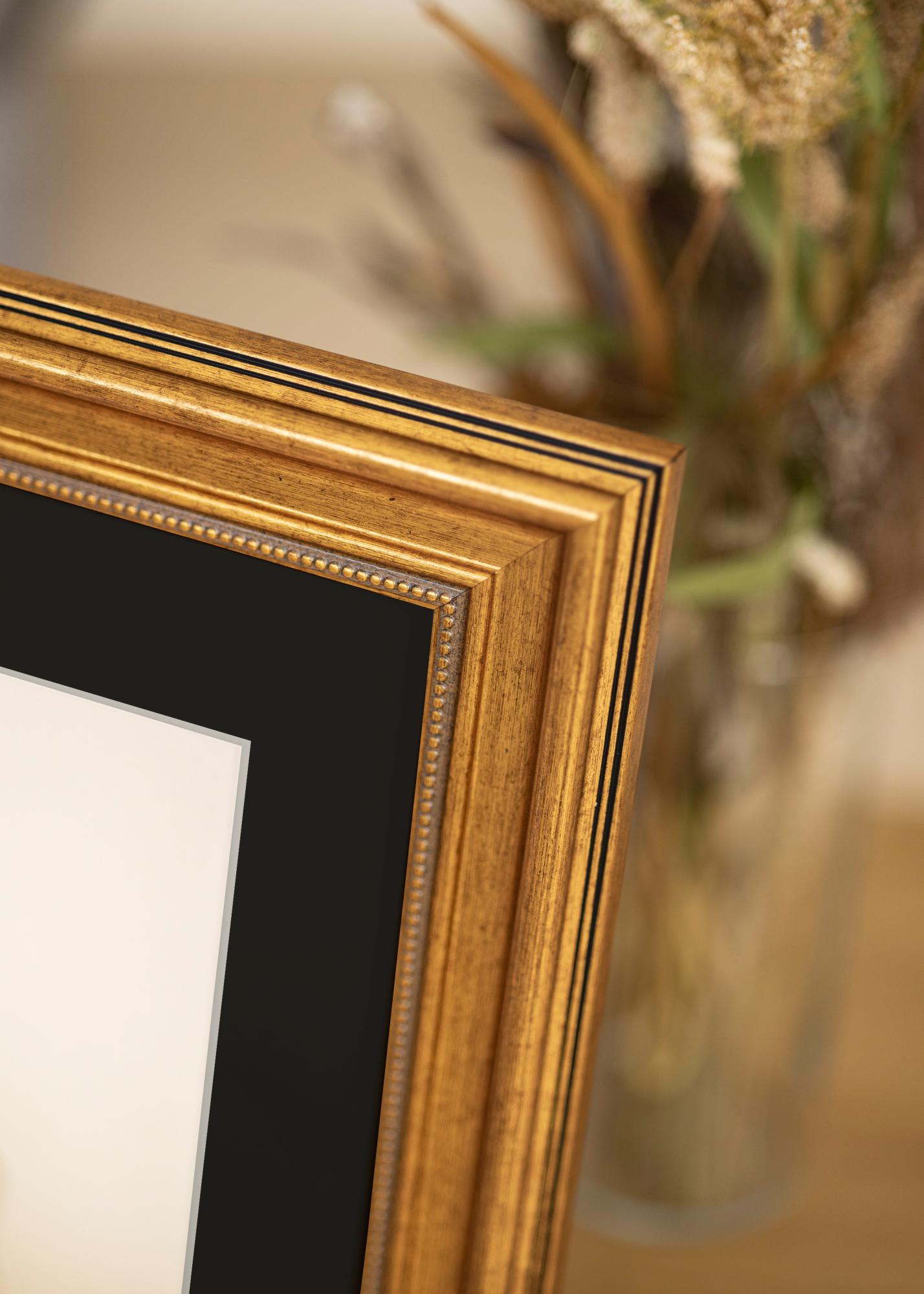 Investuokite į šį auksinį rėmą su juoda paspartuote, kad jūsų mėgstamiausiems paveikslams būtų suteiktas dėmesys, kurio jie nusipelno. Stiliaus, apsaugos ir kokybės derinys daro šį rėmą puikiu pasirinkimu tiems, kurie nori geriausiai eksponuoti savo paveikslus.