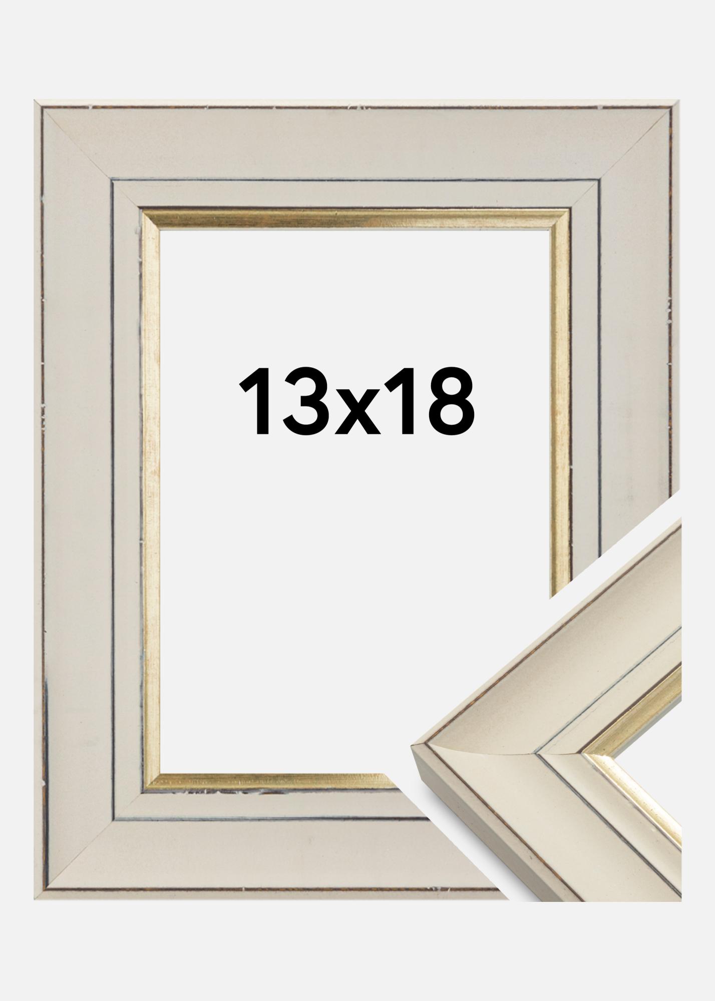Nuotraukų rėmelis klasikiniu stiliumi su įdomiu retro jausmu. Rėmelis turi nusidėvėjusį profilį baltos spalvos su gražia auksine linija prie pat motyvo, dėl savo neutralios dizaino ir spalvos tai yra rėmelis, tinkantis beveik visoms aplinkoms ir visiems motyvų tipams.