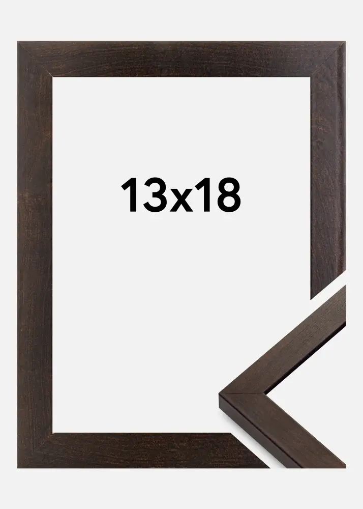 Tai yra paveikslų rėmas riešutmedžio atspalvio, kuris yra šiek tiek tamsesnis medžio tipas, kurio spalva puikiai dera su juodai baltais nuotraukomis arba gamtos motyvų nuotraukomis. Jei jūsų namuose yra riešutmedžio baldų ar kitų interjero detalių, šis rėmas puikiai derės!