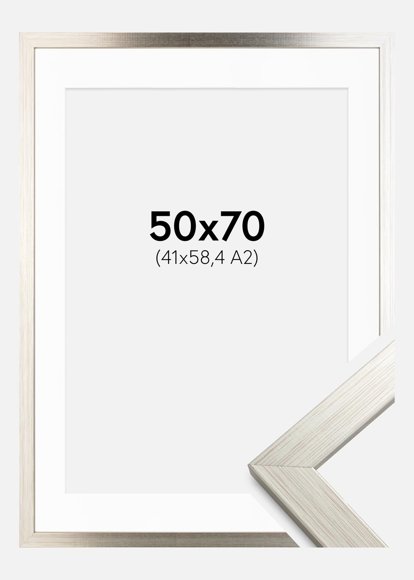 Rėmas Sidabras Wood 50x70 cm - Paspartu Baltas 42x59,4 cm (A2)