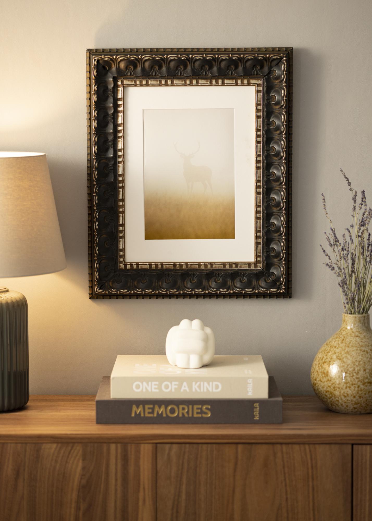 Rėmelis Skokloster Juodas yra puikus sprendimas tiems, kurie ieško elegantiško ir klasikinio rėmelio savo nuotraukoms ar meno kūriniams. Su savo gilia juoda baze ir antikinėmis aukso detalėmis šis nuotraukų rėmelis suteikia rafinuotą ir prabangų pojūtį, kuris tinka kiekviename namuose. Detalizuoti raštai išilgai kraštų sustiprina jo nesenstantį dizainą ir suteikia antikinio žavesio.