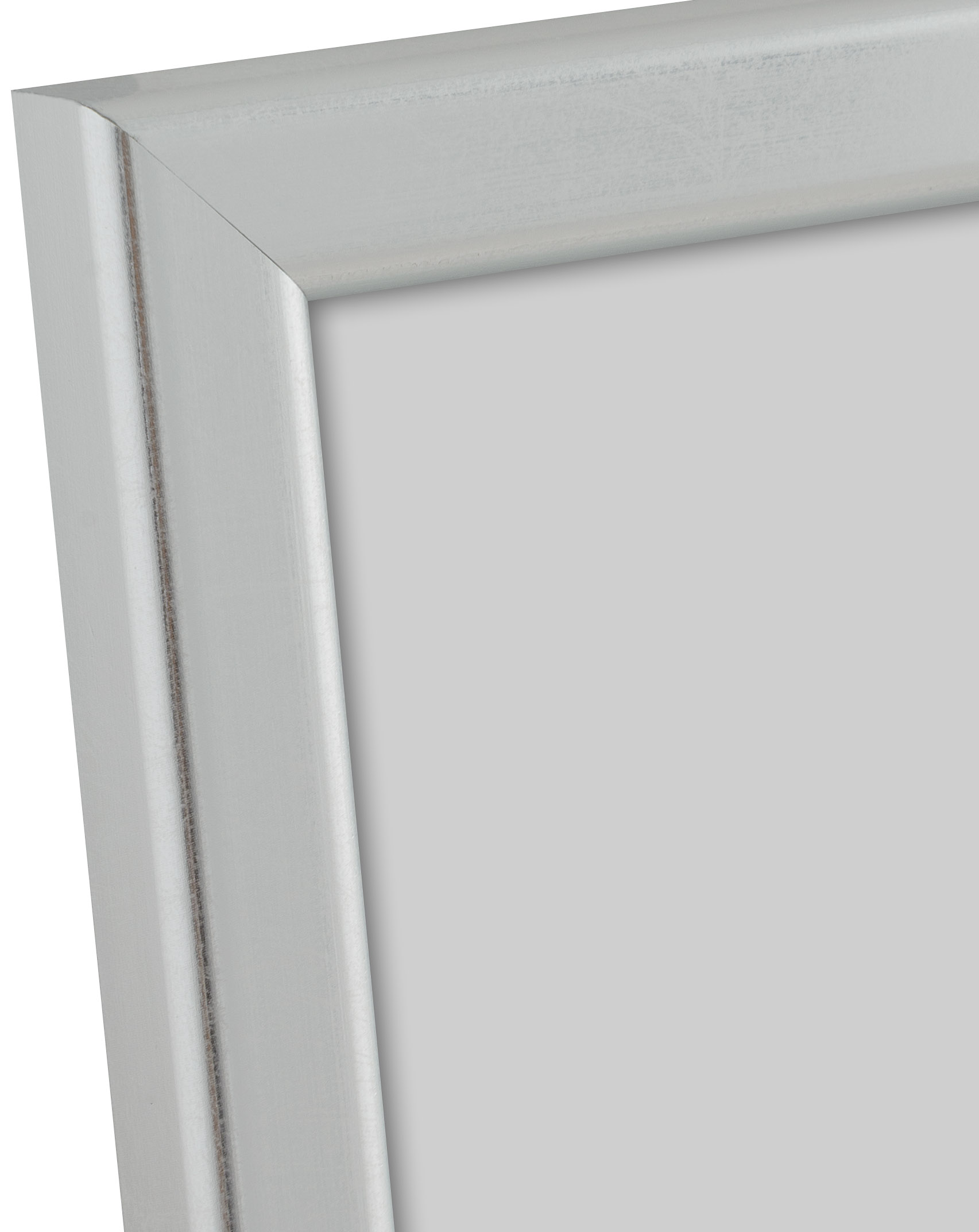 Pastatykite savo nuotrauką, paveikslą ar plakatą šiame stilingame rėmelyje! Rėmelis pagamintas iš sidabru dažyto medžio ir turi antirefleksinį stiklą. Rėmo galinė dalis ir atraminė kojelė yra padengtos juodos odos imitacija, suteikiančia ypatingą prabangos jausmą.