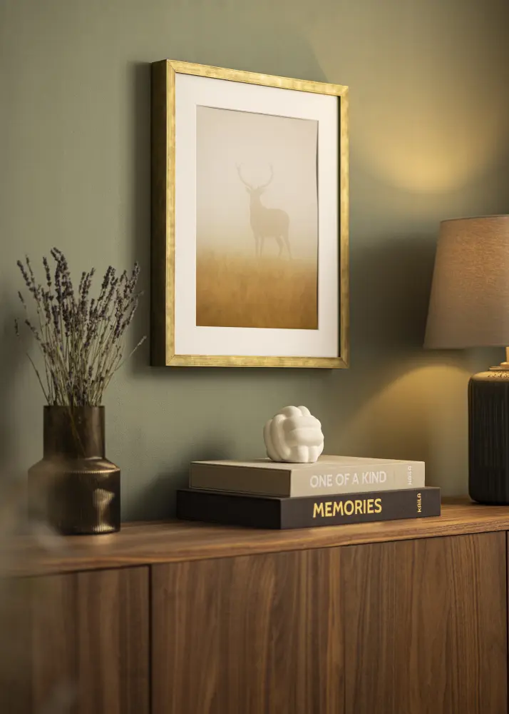 Rėmas turi 20 mm pločio rėmo sąrašą ir 39 mm gylį, kuris suteikia jam tvirtą ir solidų jausmą. Pagamintas iš pušies, šis rėmas yra tvirtas ir lengvas, todėl lengva jį tvarkyti ir pakabinti. Stilingas dizainas paverčia Somerset Gold universaliu pasirinkimu, kuris tinka tiek klasikiniams, tiek moderniems interjero aplinkoms.