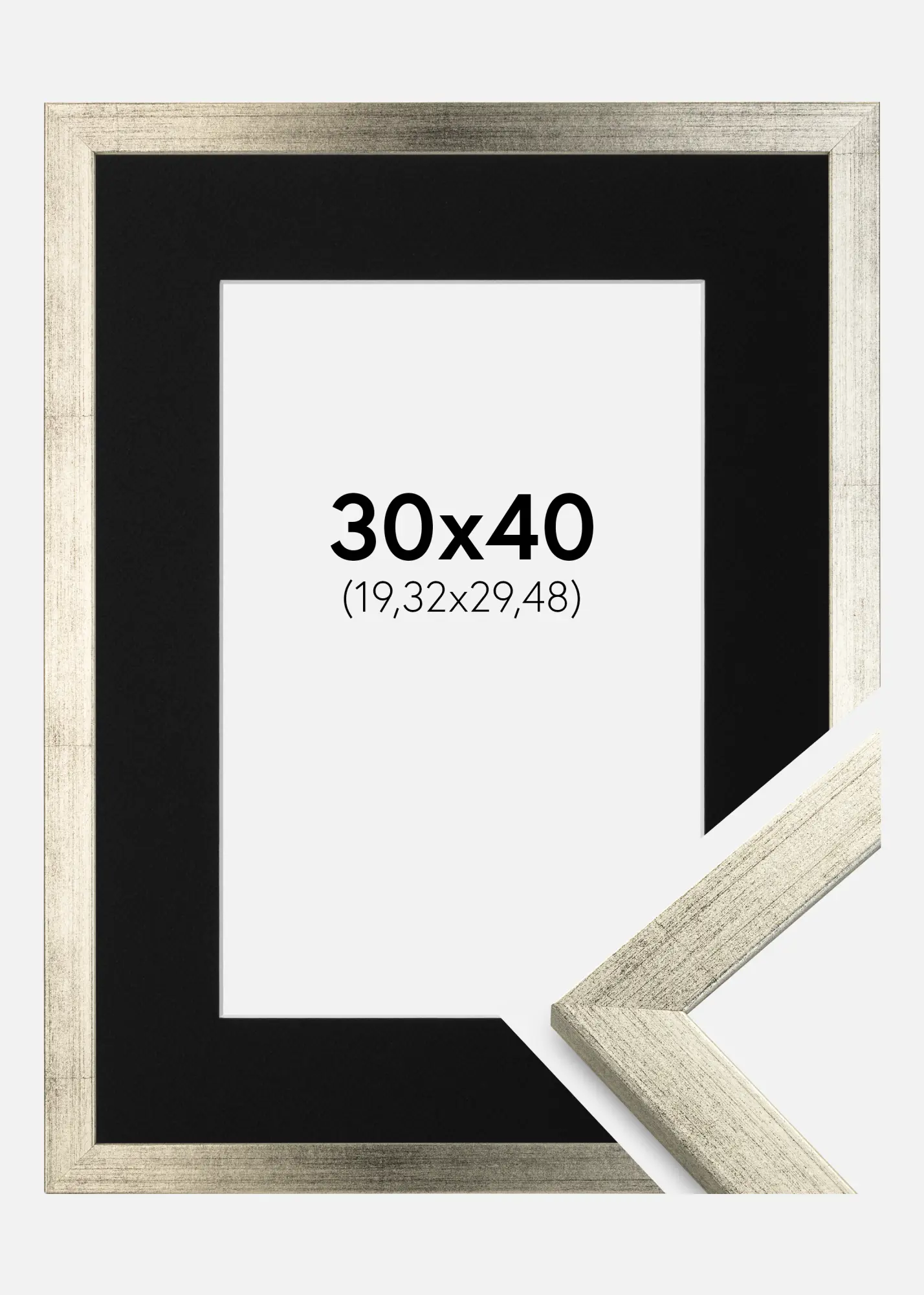 Rėmas Stilingas Sidabras 30x40 cm - Paspartu Juodas 8x12 inches