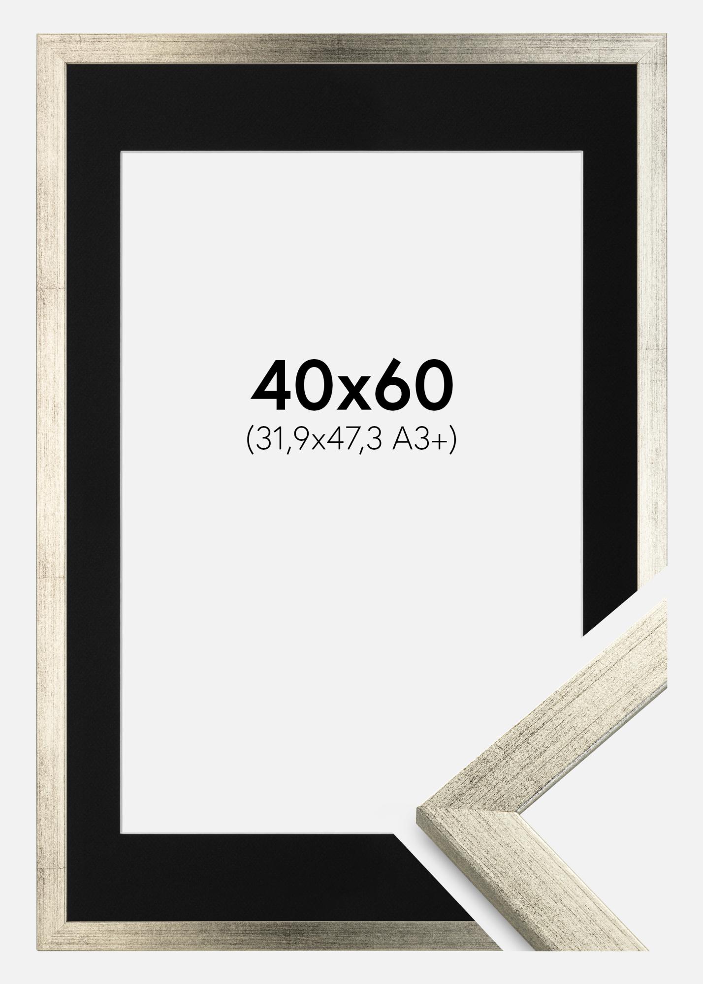 Rėmas Stilingas Sidabras 40x60 cm - Paspartu Juodas 32,9x48,3 cm (A3+)