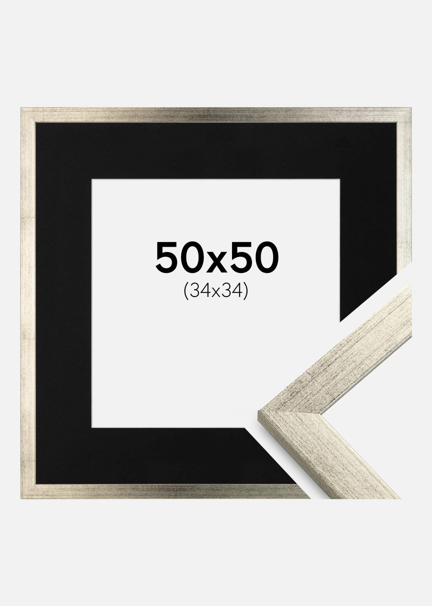 Rėmas Stilingas Sidabras 50x50 cm - Paspartu Juodas 35x35 cm