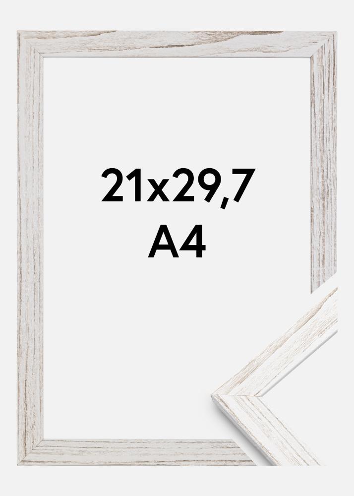 Ši rėmelis yra vintage dizaino. Rėmelis yra baltos spalvos su rudomis dėmėmis, kurios suteikia šiam rėmeliui truputį rustiškesnį pojūtį. Rėmelio kraštas yra 20 mm pločio ir 14 mm gylio. Rėmelis pagamintas iš pušies ir turi tikrą stiklą. Vintage White yra įvairių dydžių, kuriuos galite gražiai derinti tarpusavyje. Šis paveikslų rėmas yra 21x29,7 cm ir tinka A4 dydžio motyvams.