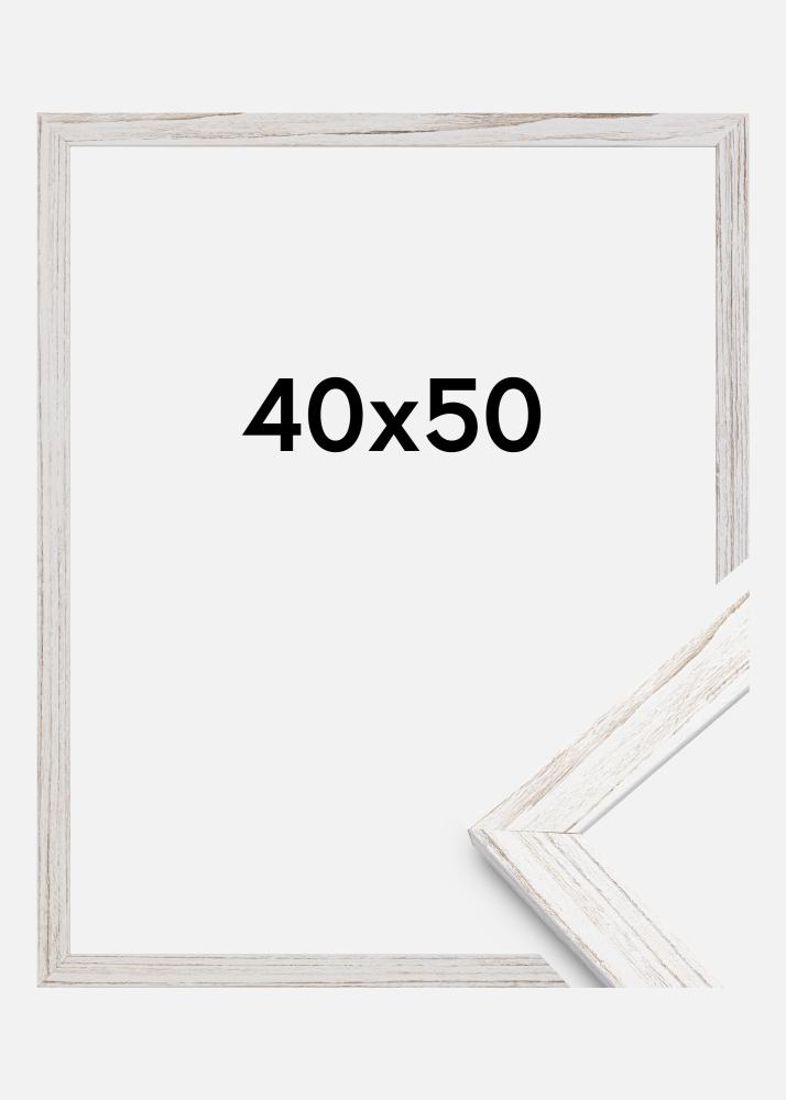 Tai yra rėmas su vintažine dizaina. Rėmas yra baltos spalvos su rudomis dėmėmis, kurios suteikia šiam rėmui šiek tiek daugiau kaimišką pojūtį. Rėmo plotis yra 20 mm ir gylis 14 mm. Rėmas pagamintas iš pušies ir turi tikrą stiklą. Vintažinė Balta yra įvairių dydžių, kuriuos galite gražiai derinti tarpusavyje. Šis paveikslų rėmas yra 40x50 cm dydžio.