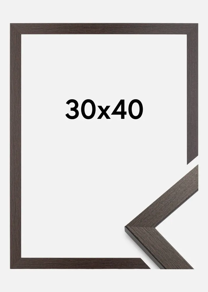 Tai aukštos kokybės rėmas iš tamsiai rudos medienos, panašios į masyvų wenge medį. Rėmelio juosta matuoja 20 mm plotį ir 14 mm gylį, šie matmenys daro šį rėmelį tvirtą ir stabilų nuotraukų rėmelį, kuris gražiai įrėmina jūsų motyvą. Rėmo gale yra sieniniai tvirtinimo elementai, kurie leidžia pakabinti nuotrauką tiek vertikaliai, tiek horizontaliai. Rėmas pagamintas iš pušies ir turi tikrą stiklą. Elegantiškas Wenge yra kelių skirtingų dydžių, o šis matuoja 30x40 cm.