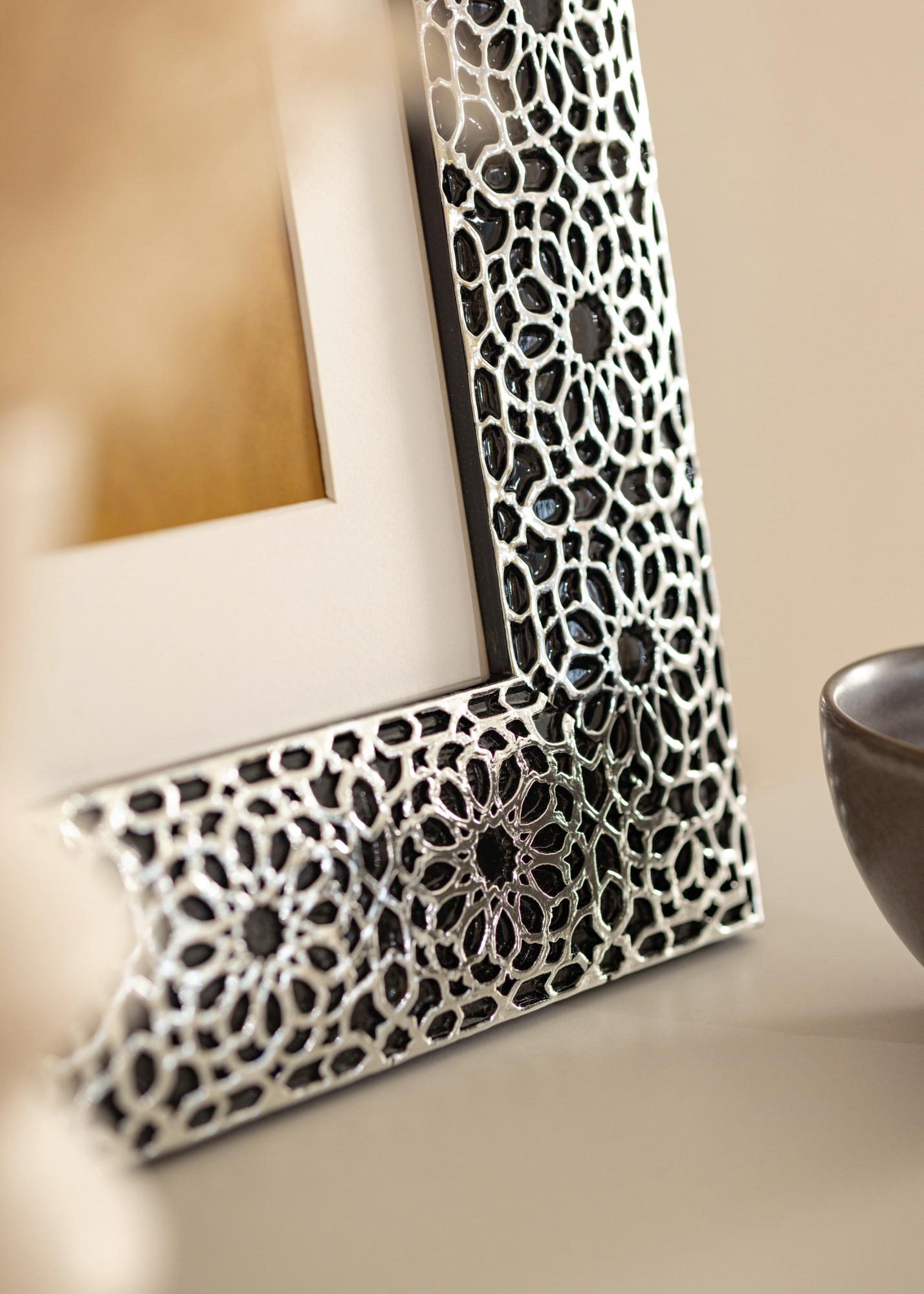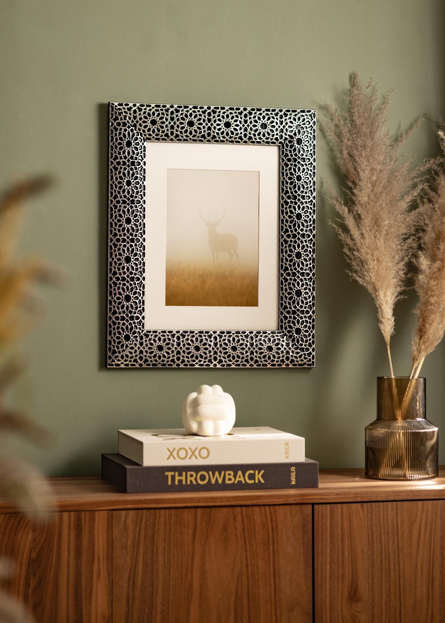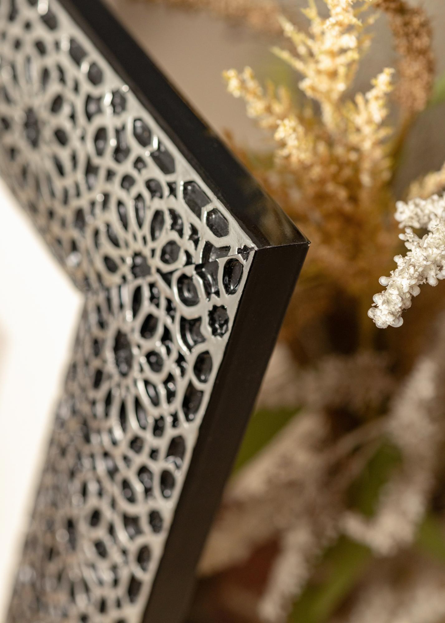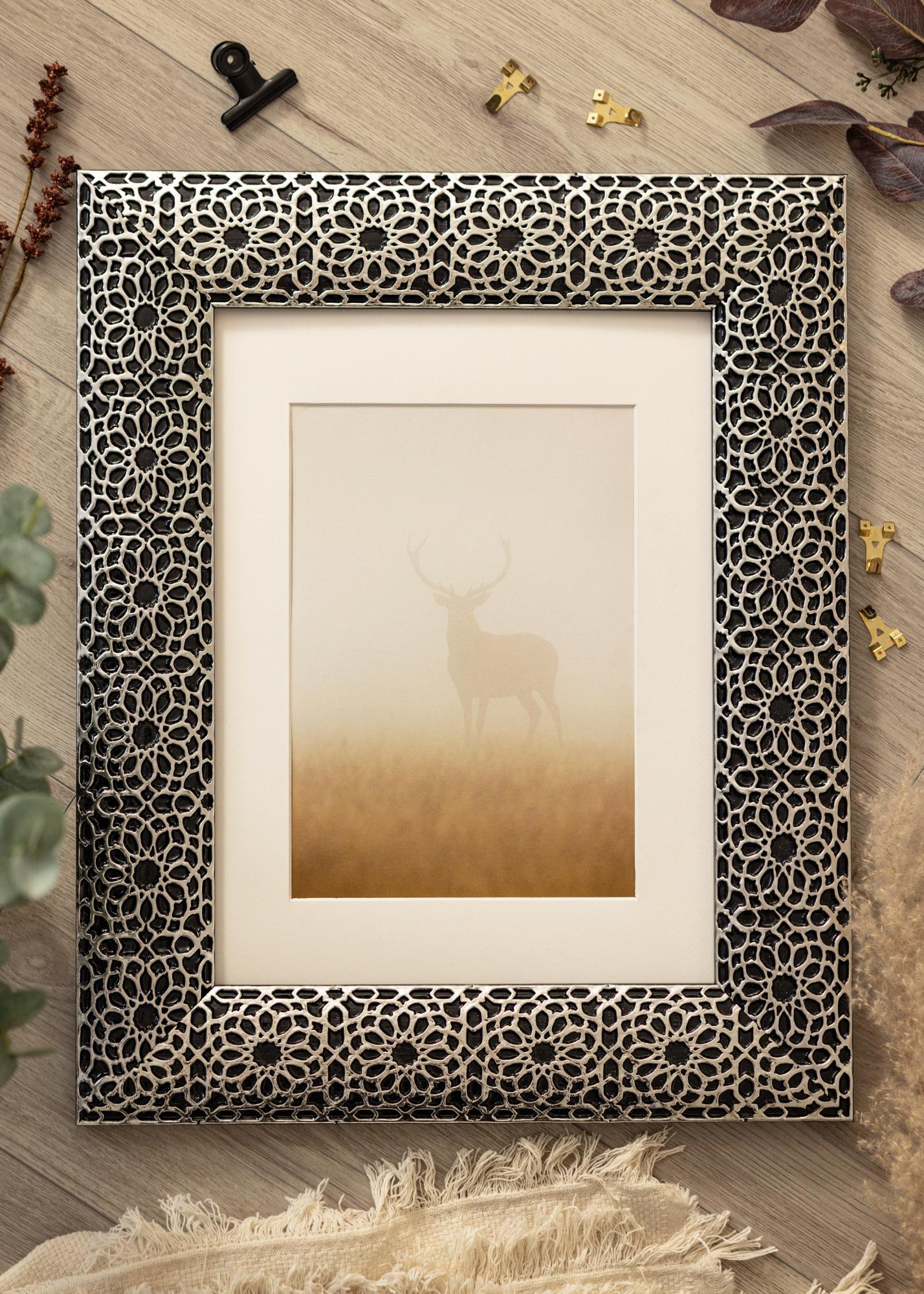 "Stokholmas Juoda" geriausiai apibūdinama kaip prabanga ir elegancija, kai tai yra geriausia. Su savo unikalia prabangia juoda dizainu ir ornamentuotomis sidabrinėmis dangomis, tai yra rėmas jums, kurie tikrai nori kažko unikalaus, kas tikrai išsiskiria! Puikiai tinka dideliems portretams ir vestuvių nuotraukoms.