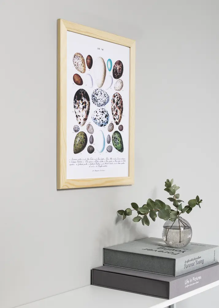 Juodas paspartas papildo ir pabrėžia motyvą, sukuria vizualų atskyrimą ir suteikia papildomą rafinuotumo sluoksnį. Rėmas aprūpintas praktiškais metaliniais kabliukais gale, kas leidžia lengvai pakabinti.