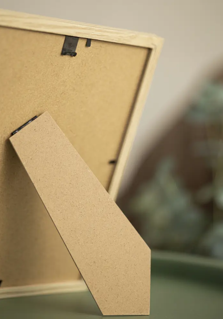 Rėmas pagamintas iš MDF medžiagos su folijuotu ąžuolo spalvos paviršiumi ir turi ploną 14 mm rėmo profilį. Yra pakankamai vietos papildyti savo nuotraukas prabangiu pasportu, dėka rėmo vidinio gylio (falso gylio) 12 mm.