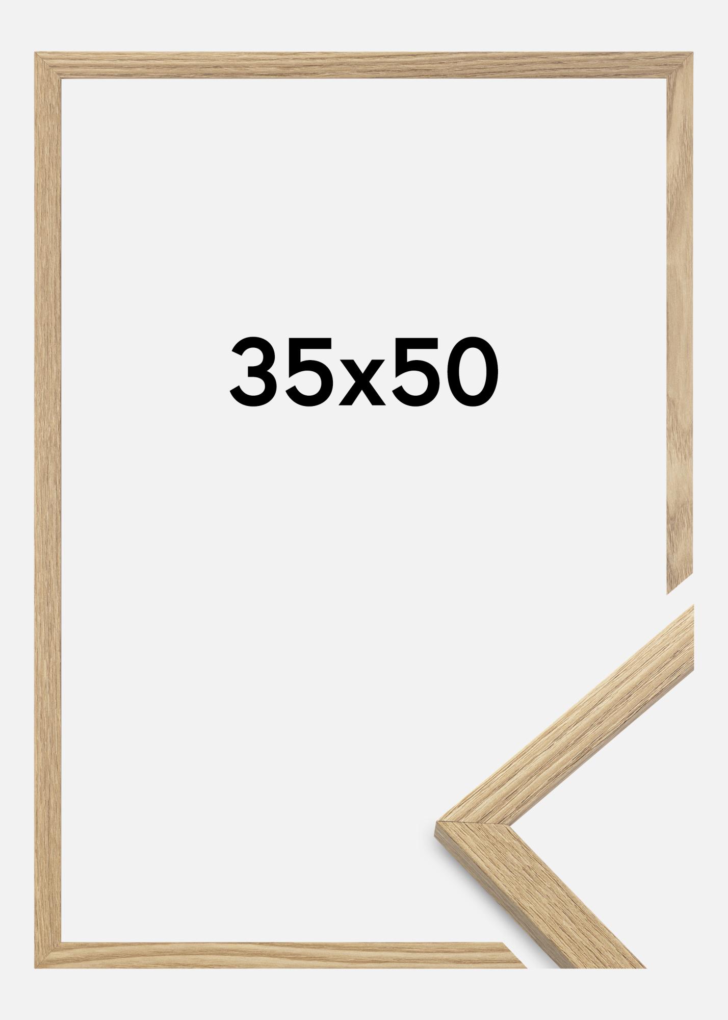 Rėmelis yra pagamintas iš MDF medžiagos su folijuotu ąžuolo spalvos paviršiumi ir turi ploną 14 mm rėmelio profilį. Rėmelio vidinis gylis (falso gylis) yra 12 mm, todėl yra pakankamai vietos prabangiai paspartui pridėti prie jūsų nuotraukų.