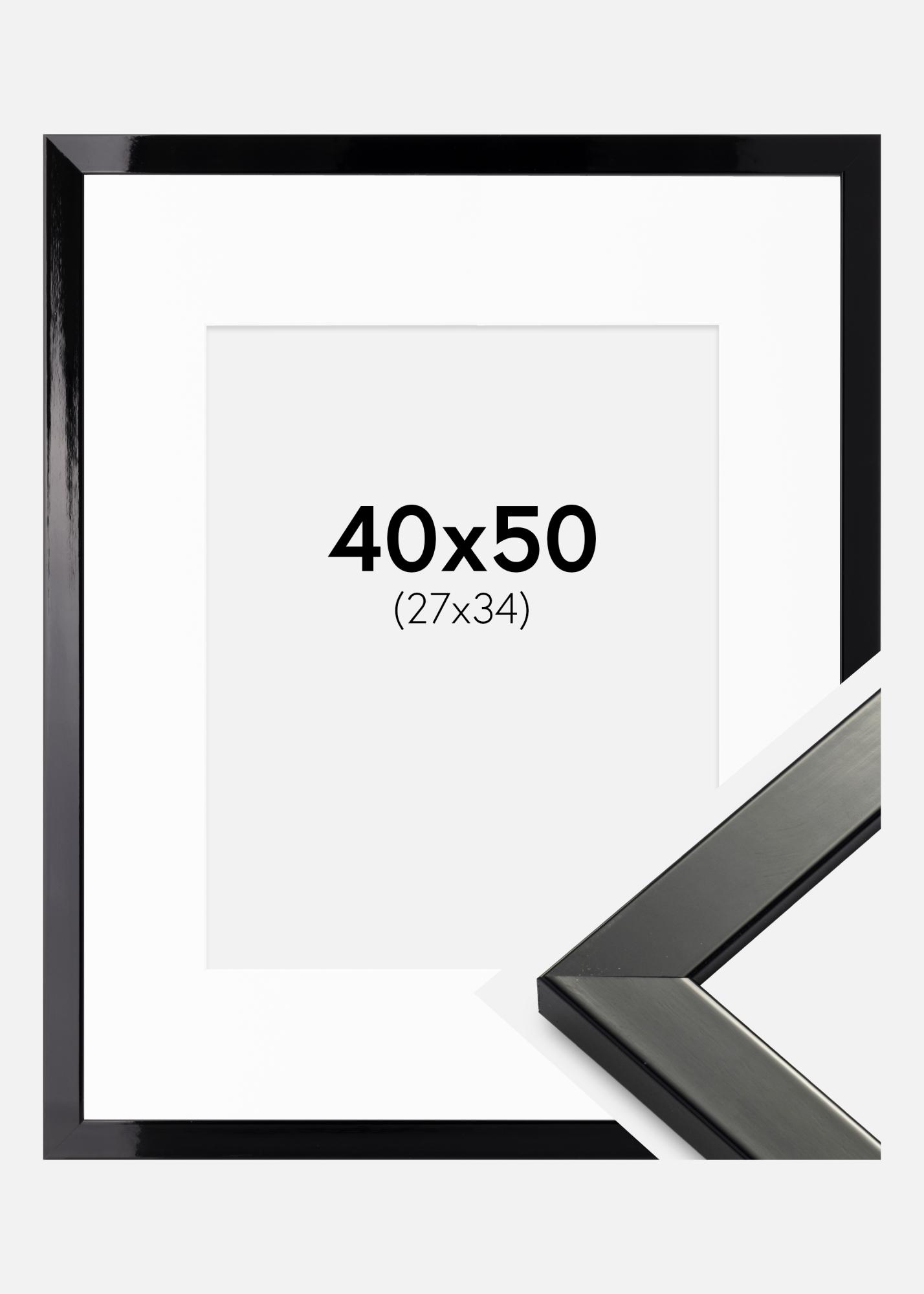Rėmas Uppsala Itin blizgus juodas 40x50 cm - Paspartu Baltas 28x35 cm