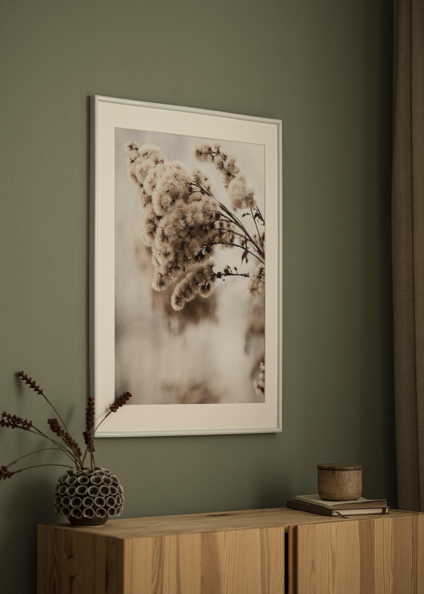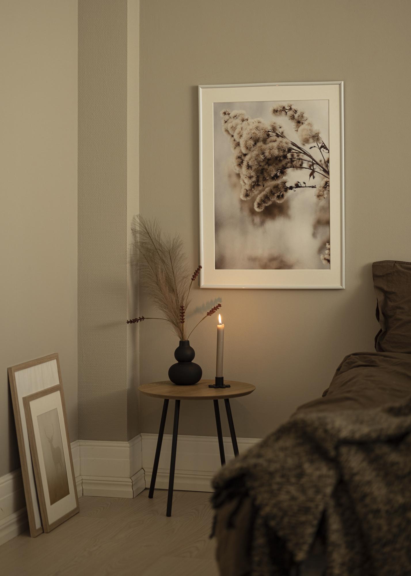 Su šiuo paveikslo rėmeliu jūsų motyvas gali gauti modernų įrėminimą, dėka plonos rėmo juostelės su blizgiu paviršiumi. Balta spalva leidžia derėti su įvairiais motyvais, pavyzdžiui, plakatais, piešiniais arba šeimos nuotraukomis. Su vidiniu 15 mm gyliu turite pakankamai vietos papildyti šį rėmą paspartu ir taip jūsų paveikslams suteikti erdvesnį įrėminimą, atkreipiant dar daugiau dėmesio į motyvą. Norėdami įdėti savo paveikslus, pasukite metalinius klipus rėmo gale, nuimkite galinę dalį ir įdėkite motyvus į rėmą.
