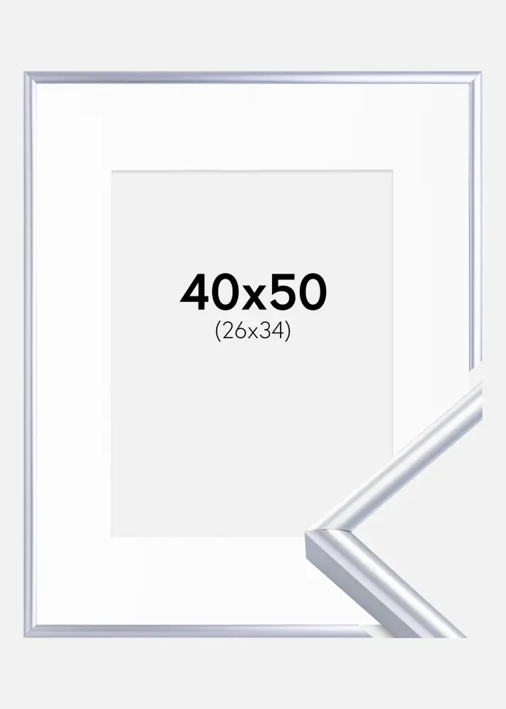 Rėmas Victoria Sidabras 40x50 cm - Paspartu Baltas 27x35 cm