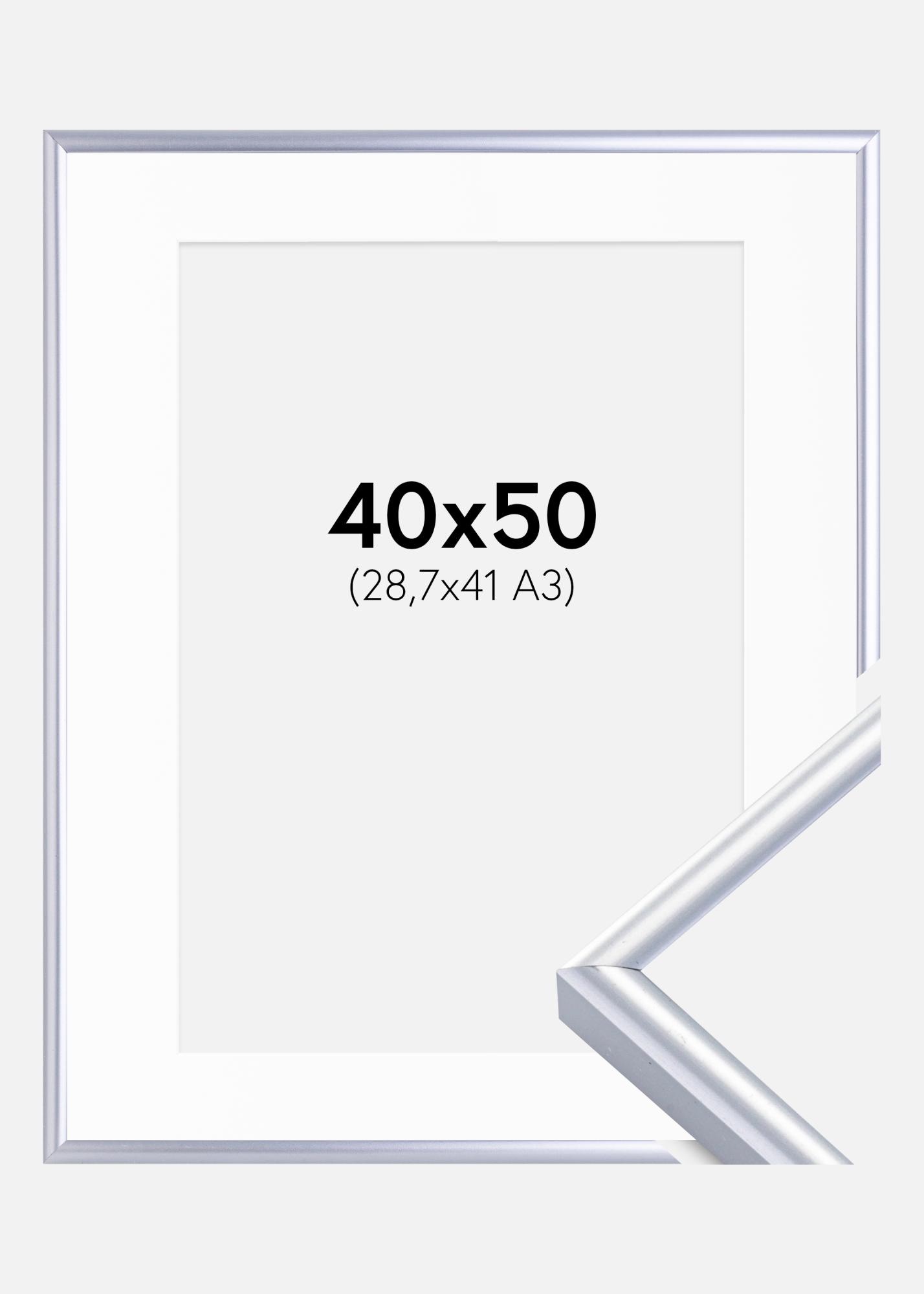Rėmas Victoria Sidabras 40x50 cm - Paspartu Baltas 29,7x42 cm (A3)
