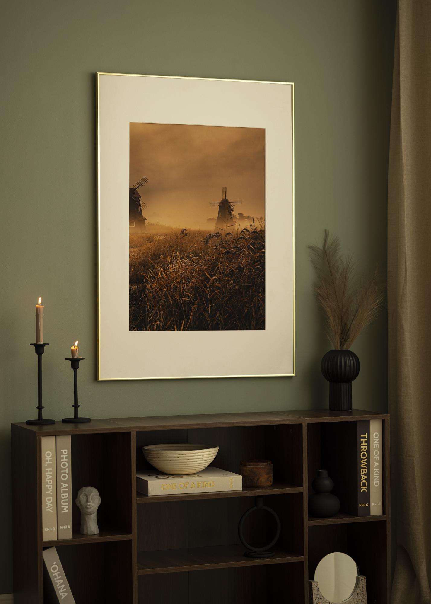 Rėmelis turi siaurą ir stilingą rėmelių juostą, kurios plotis - 6 mm, suteikiančią gražų rėminimą, neužgožiant pagrindinio motyvo vaidmens. Jo blizgus paviršius subtiliai atspindi šviesą ir suteikia papildomą dimensiją Jūsų sienų dekoravimui.