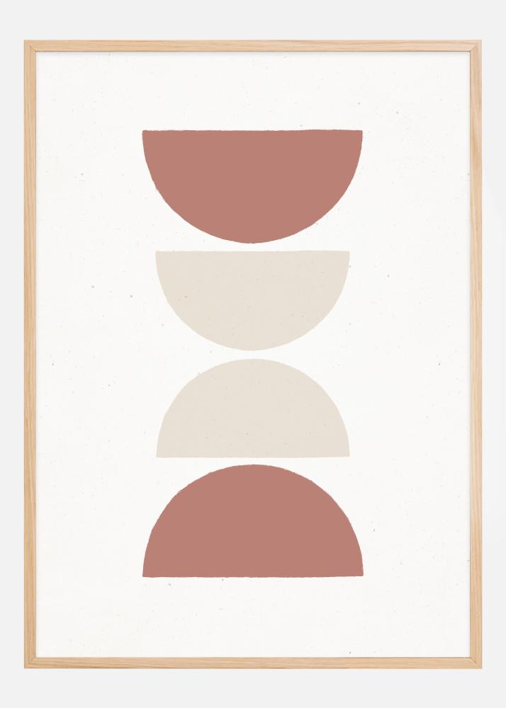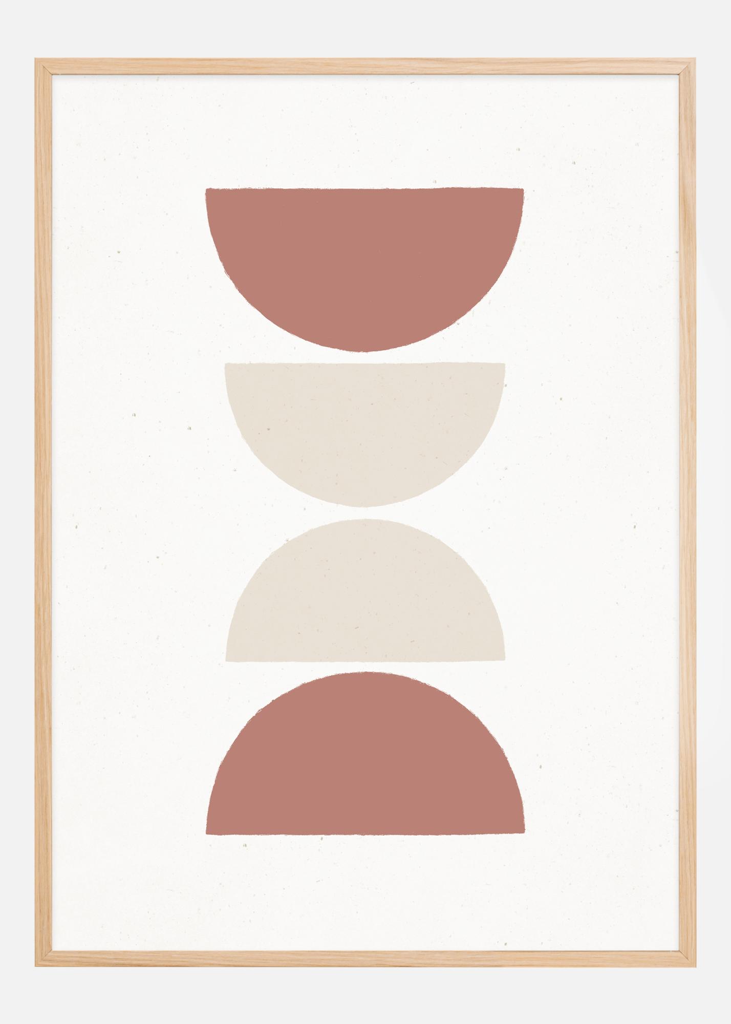 Šis rafinuotas plakatas, pavadintas „Rust and Sand - Lungo“, pritraukia dėmesį savo paprastu, bet drąsiu puslankio formų išdėstymu. Jos išdėstytos viena ant kitos ramioje simetrijoje, kuri sukuria vertikalią dinamiką baltame fone. Dėl savo subtilios rūdžių raudonos ir smėlio smėlinės spalvų paletės šis spaudinys yra subtiliai paprasto hymažas ir suteikia šiltą bei žemišką jausmą bet kokioje patalpoje, kurioje jis bus patalpintas.