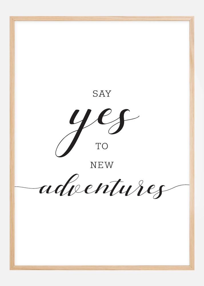 Kaligrafijos plakatas su linksmu kelionės citata kursyvu ir mašinrašte. Pasiruošk sakyti taip naujiems nuotykiams, kai pakabinsi šią paprastą juodai baltą citatą namuose. Įkvėpkite save kiekvieną dieną žiūrėdami į šią frazę.