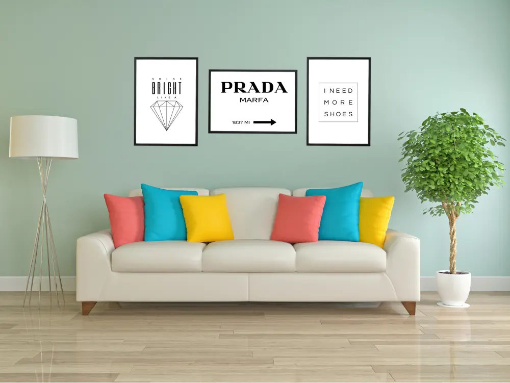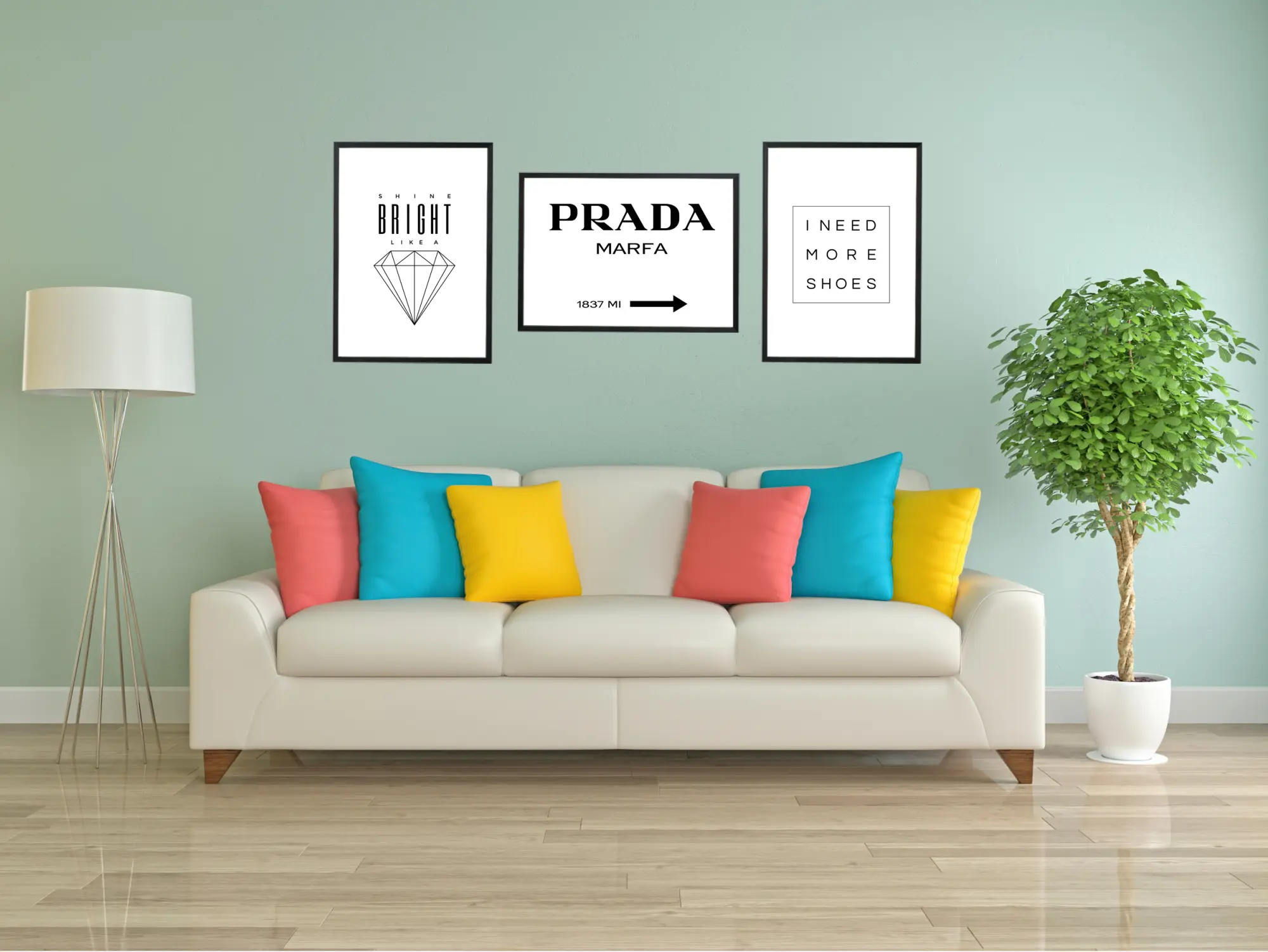 Madingas plakatas, kuris puikiai derinamas su kitais motyvais, kad sukurtumėte madingą paveikslo sieną.