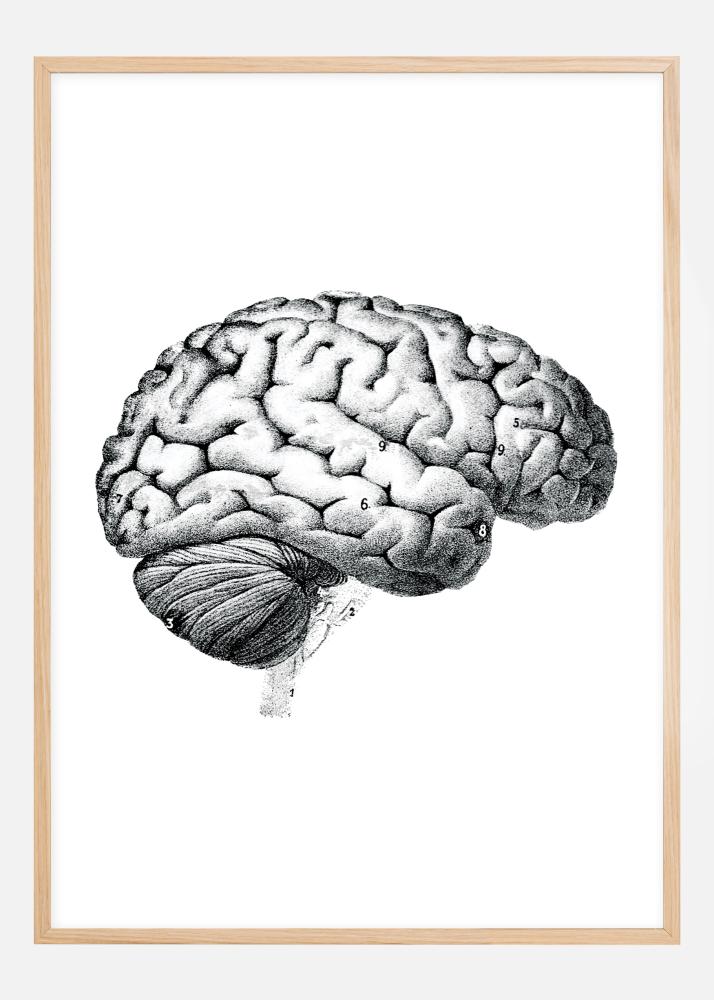 Padarykite savo interjerą įdomesnį su įvairiais mokykliniais plakatais, kurie turi senovinį jausmą! Šis plakatas yra senos smegenis vaizduojančios brėžinio kopija su numeriais prie skirtingų dalių. Brėžinys paimtas iš anatomijos mokomosios knygos. Kadangi jis yra juodai baltas, jį lengva derinti su rėmu, kuris gerai dera su likusiu interjeru. Plakatas yra įvairių dydžių, todėl lengvai rasite tokį, kuris puikiai tinka jūsų namams.