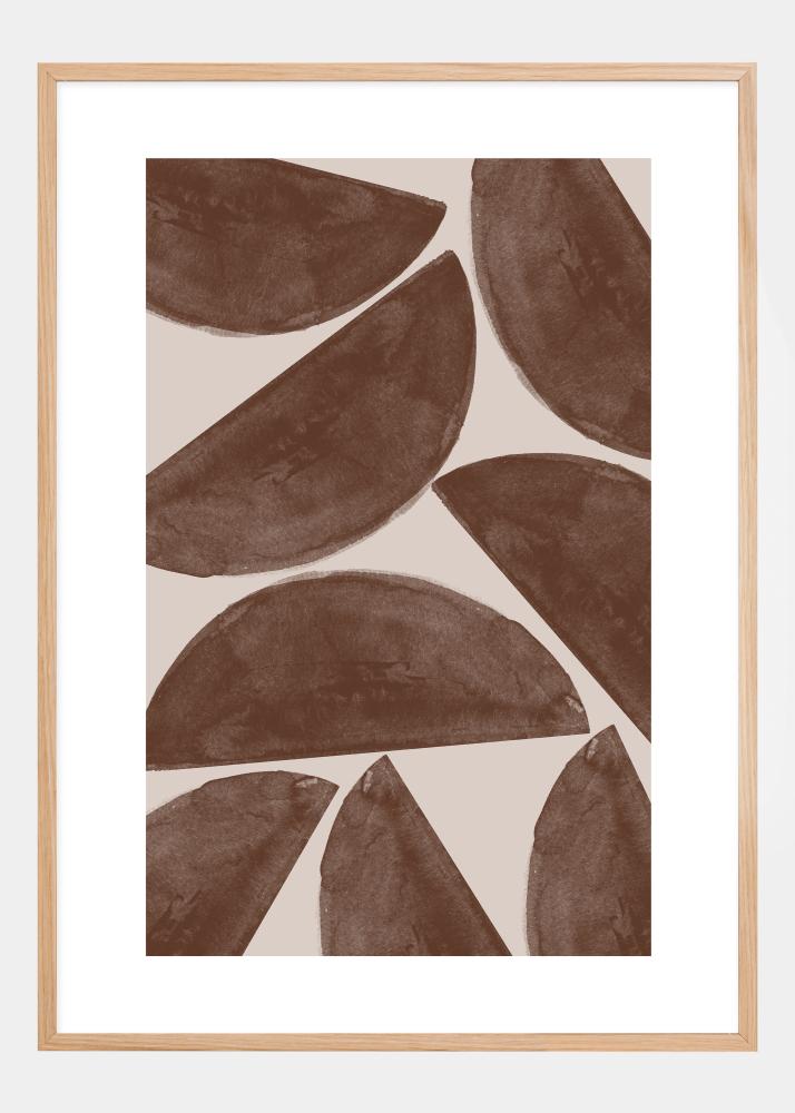 Šis plakatas išryškina seriją švelniai abstrahuotų formų, primenančių gamtos paprastą grožį. Su organinių elementų išdėstymu šiltuose ruduose ir smėlio atspalviuose, jis sukuria įspūdį apie akmenis ar lapus, pasklidusius natūraliu būdu. Šis paveikslas yra abstrakčiojo meno pavyzdys, sukeliantis tiek minčių, kiek estetinis patenkinimas.