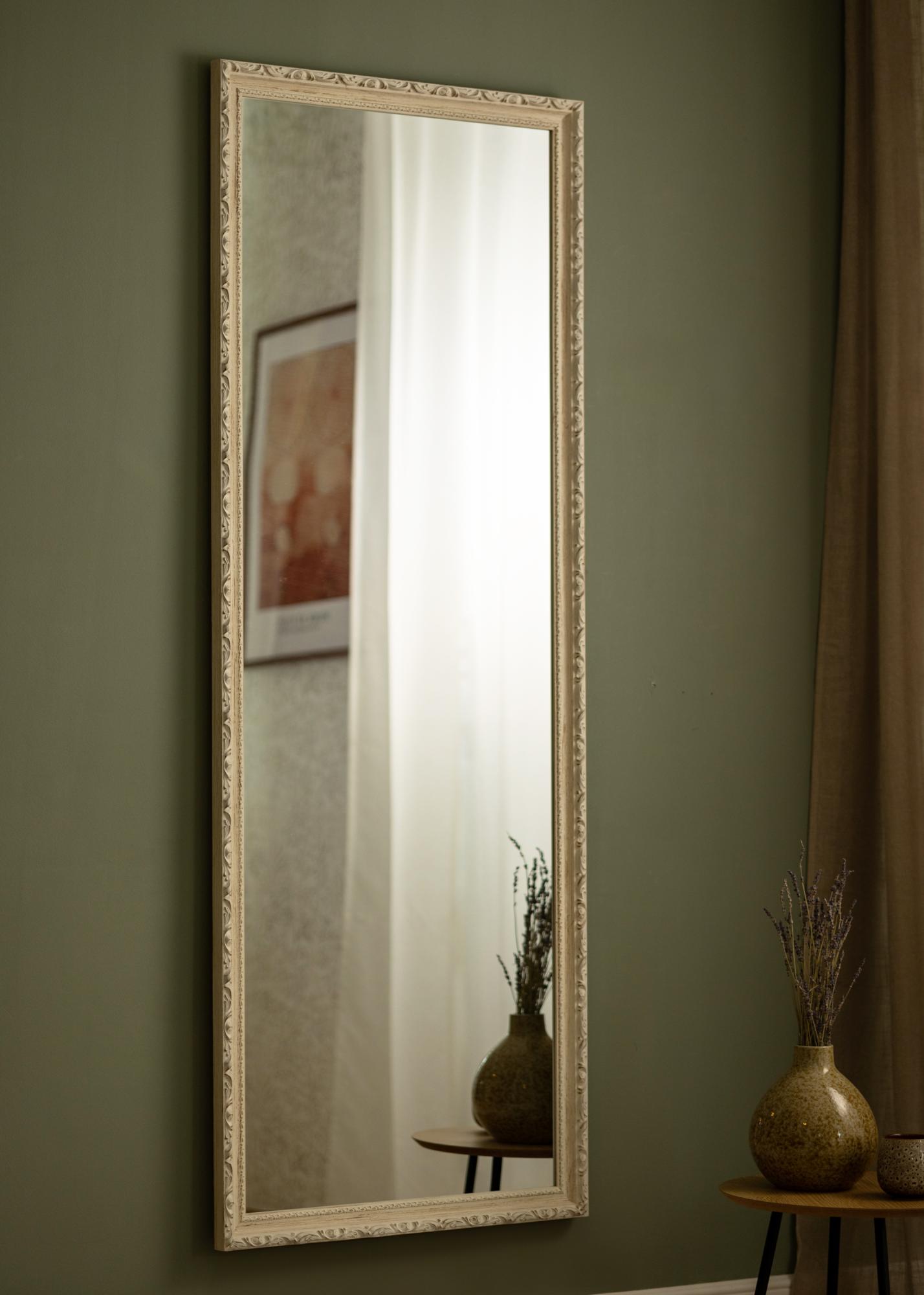 Paleiskite rėmelių parinkiklį »Balto veidrodžio senovinis stilius su matomomis medienos gyslomis ir 40 mm pločiu. Puikus pasirinkimas, kai ieškote veidrodžio, kuris išsiskiria ir užima vietą.