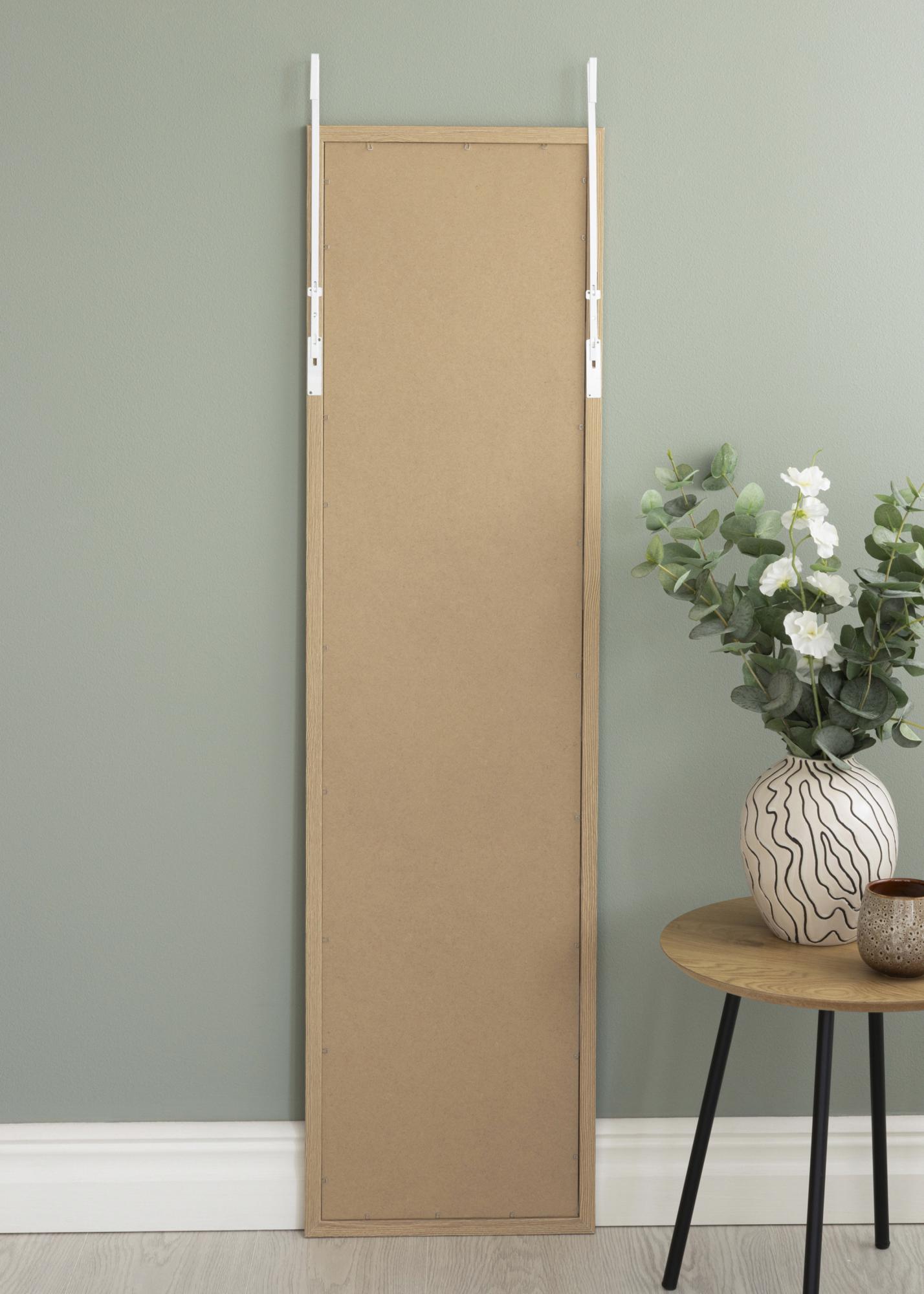 Šis durų Veidrodis turi ploną ir modernų medinį rėmą iš Ąžuolas, kuris suteikia šiltą ir natūralų įspūdį. Matinis paviršius leidžia Veidrodis atrodyti subtiliai, kartu suteikdamas kambariui tekstūros ir charakterio.