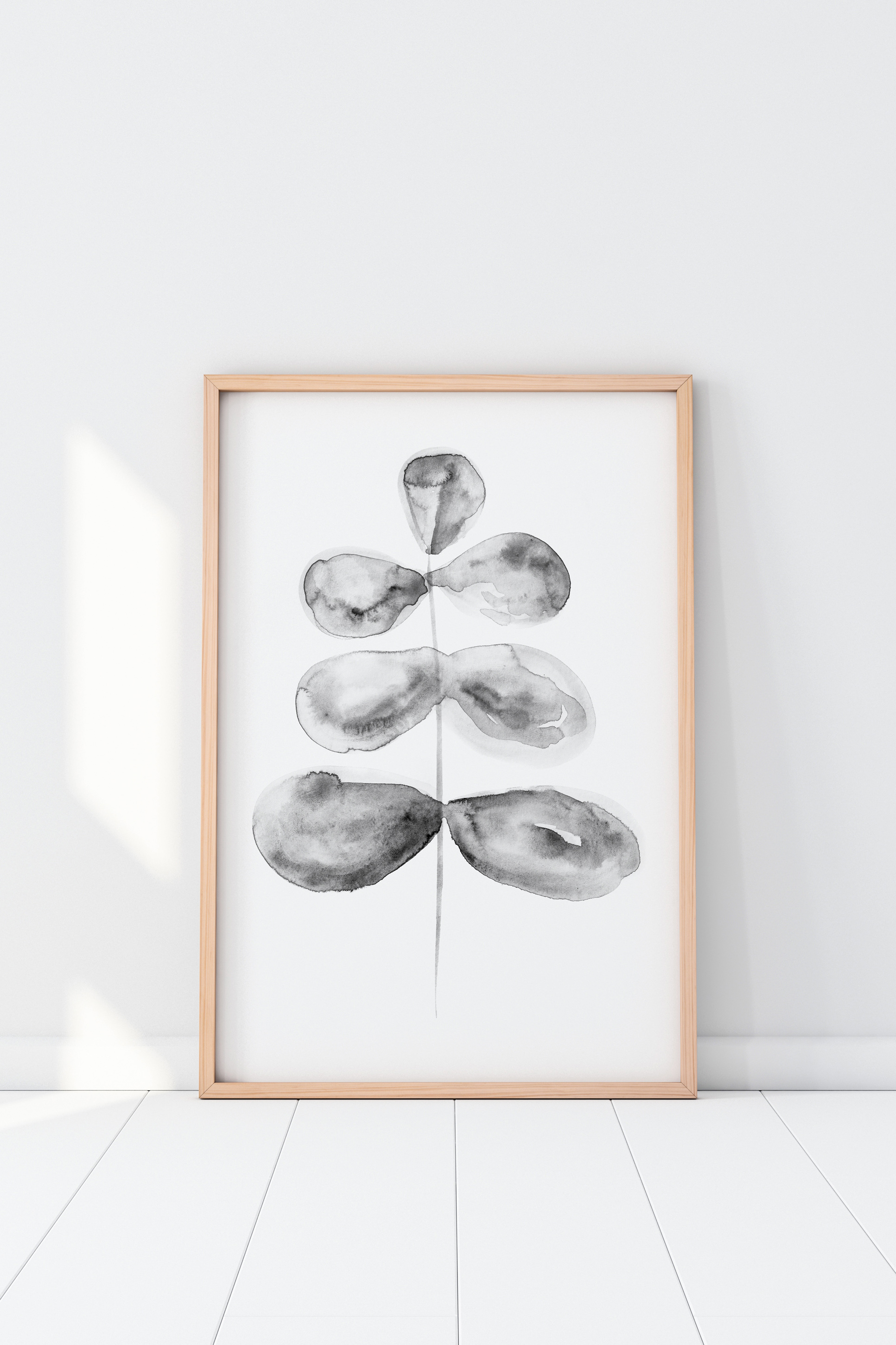 Stilingas botaninis akvarelas švelnia pilkoje spalvų skalėje, sukurtas menininkės EMELIEmaria. Paprastas ir minimalistinis plakatas, puikiai derantis su savo dvynių paveikslu Summer Calm.