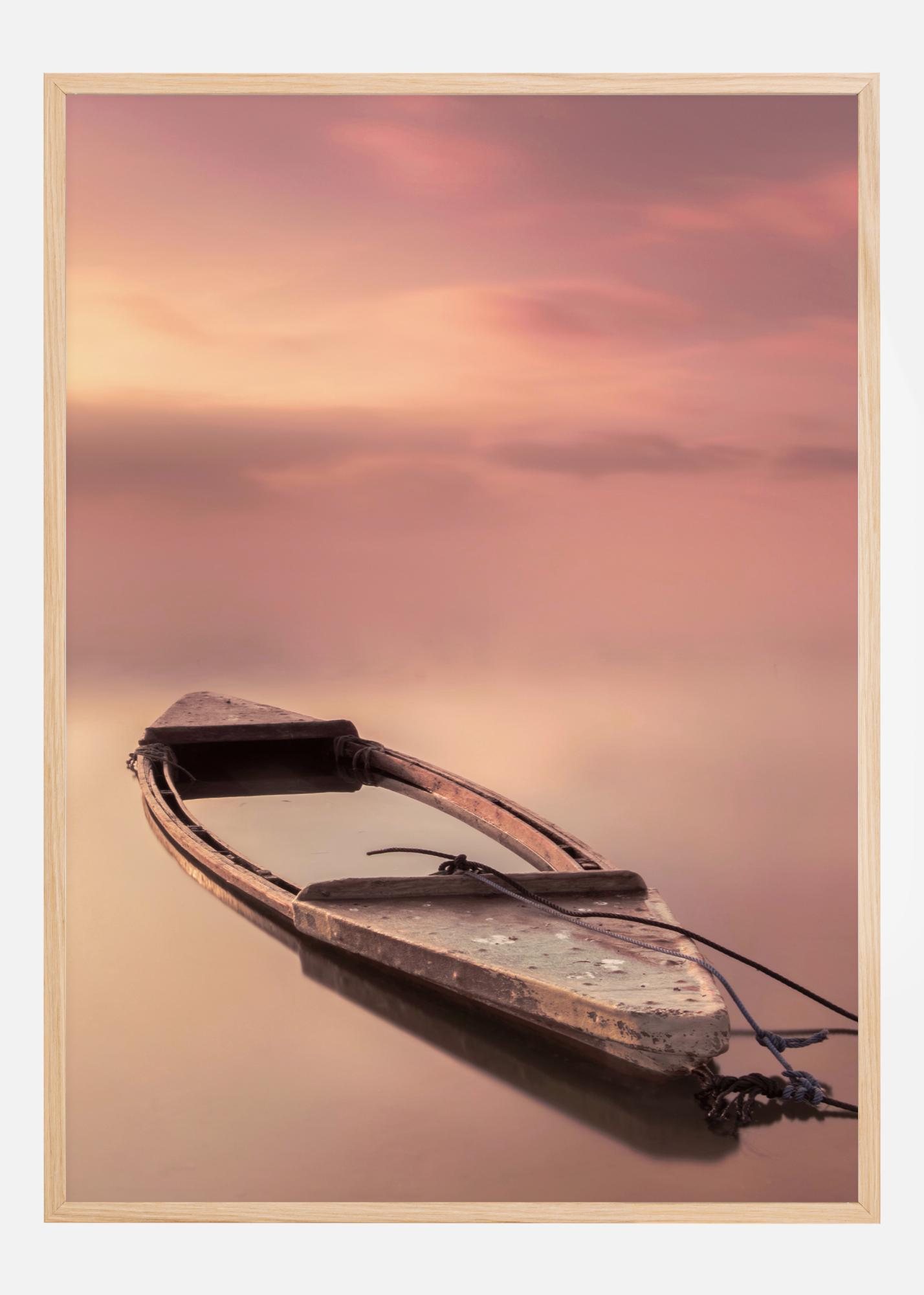 Ramus plakatas su mediniu laivu, stovinčiu ramiame vandenyje. Vanduo ir dangus yra švelnių rožinių ir violetinių pastelinių spalvų. Jie susilieja vienas su kitu, todėl vanduo ir dangus susilieja ir tęsiasi amžinai. Laivas yra vienintelis tvirtas objektas, kuris yra dėmesio centre šioje švelnioje, raminančioje nuotraukoje.