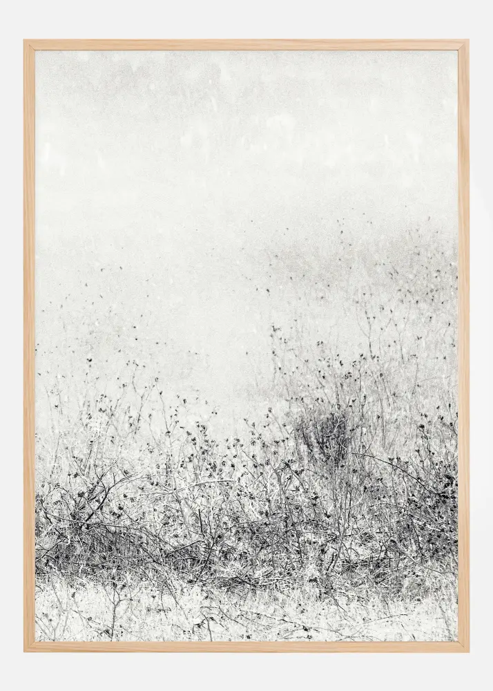 Meninis plakatas su beribiais pievų laukais juodai balta spalva. Nelygios dėmės ir linijos suteikia šiam vaizdui įspūdį, kad tai tankus žolių ir gervuogių krūmynas. Tai primena Jackson Pollack paveikslą su savo keistais rašiniais. Linijos aštriai ir ryškiai išryškėja baltame fone.