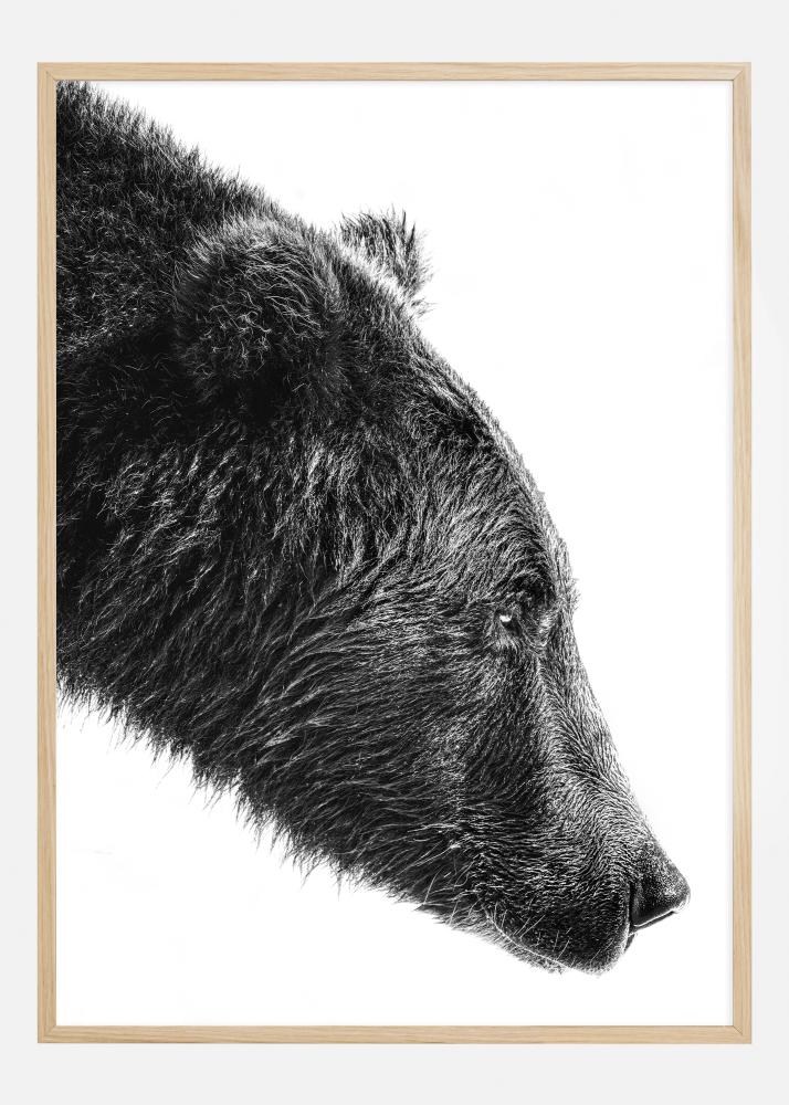 Šis elegantiškas ir galingas piešinys pateikia stambiu planu juodai baltą lokio atvaizdą, kuris suteikia natūralią ir grublėtą, laukinės dvasios pojūtį. Vaizdas yra sutelktas į lokio profilį, kur kiekviena kailio detalė ir ramios akys išryškėja dėka kontrasto tarp tamsių ir šviesių tonų.