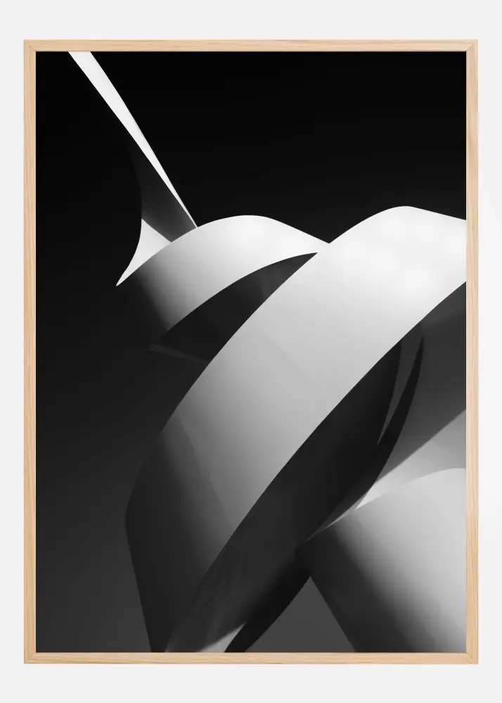 Abstraktus plakatas su vingiuotu meno kūriniu, kuris atrodo kaip ritinys. Baltos vingiuotės išsiskiria juodo dangaus fone. Šis plakatas suteikia jūsų namams daugiau meniškos ir kūrybiškos atmosferos.