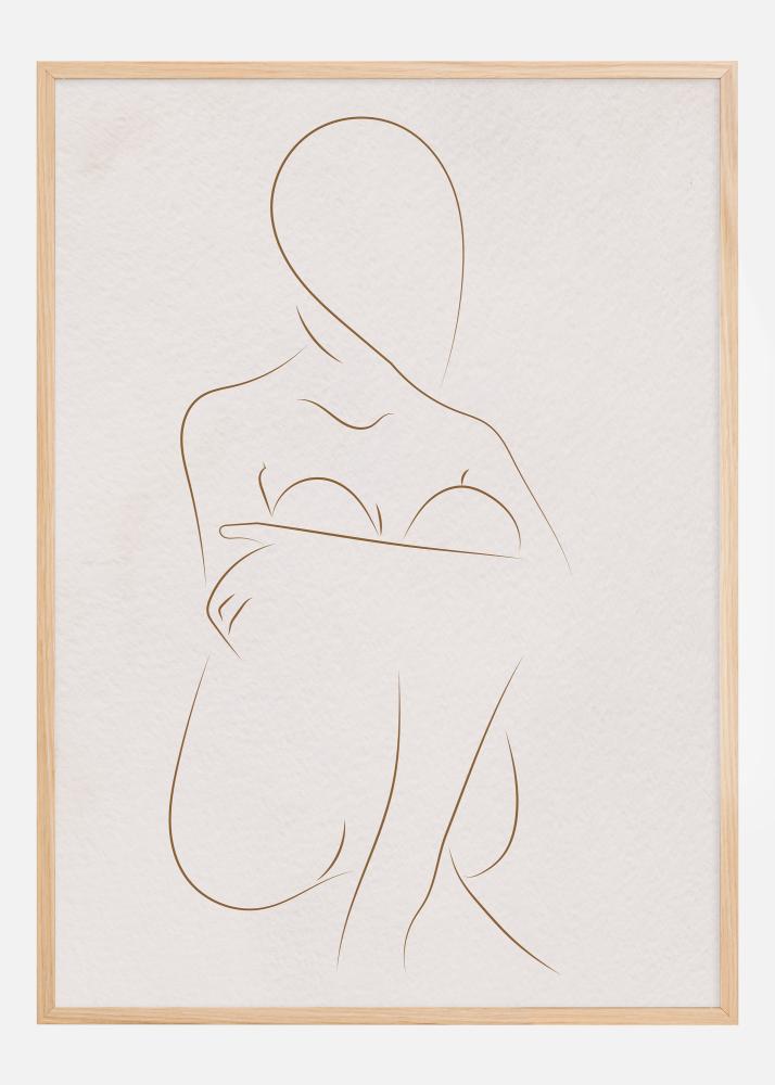 Šis elegantiškas ir minimalistinis plakatas vaizduoja moters figūrą, sukurtą plonomis linijomis, kurios žavi savo paprastumu. Linijinis menas naudoja subtilią ir paprastą estetiką moters formai pavaizduoti, suteikdamas erdvę žiūrovo interpretacijoms ir fantazijai. Minkšti kontūrai ir paprasta išraiška suteikia modernumo ir stilingo įspūdžio, kuris puikiai tinka minimalistiniam arba skandinaviškam dizaino kryptingumui.