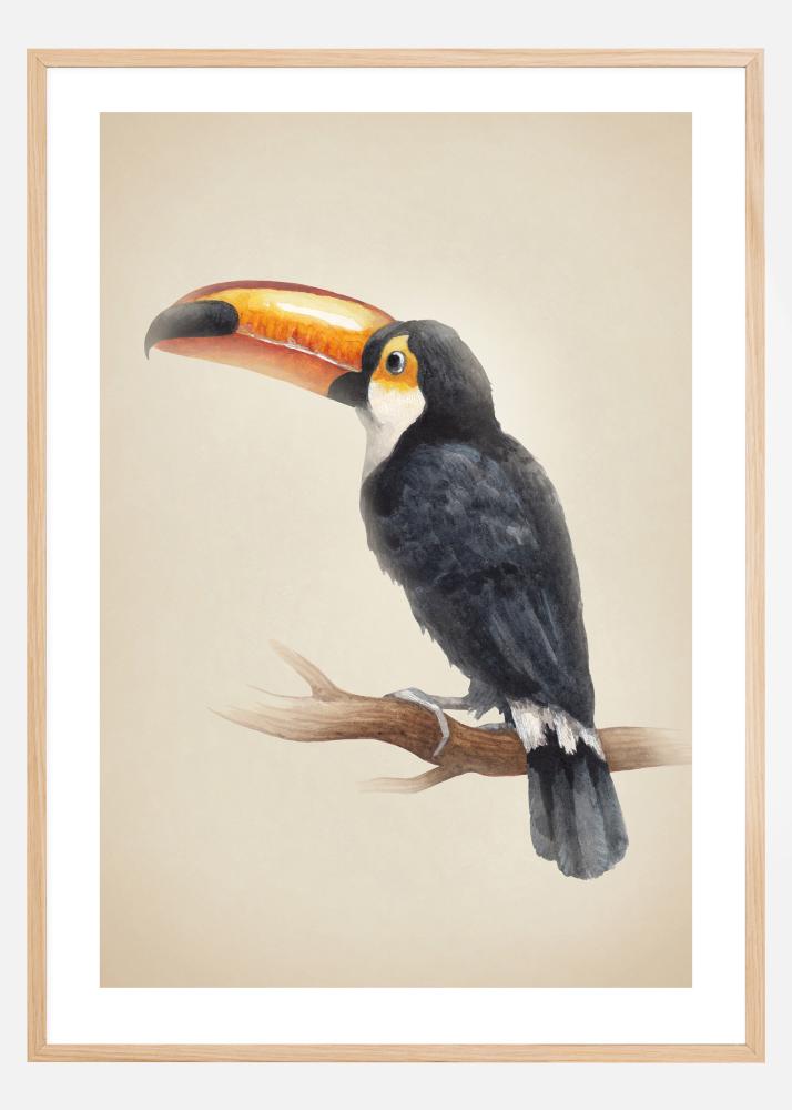 Mielas portreto plakatas su didelsnapio tukanų. Šis paukščio paveikslas turi ryškiai geltoną snapą, kuris išsiskiria iš pilko fono. Su lengvai atgręžtu nugara, šis paukštis žiba savo blizgančiais juodais plunksnomis šioje paprastoje nuotraukoje. Suporuokite su kitu plakatu su tropiniais paukščiais, kad sukurtumėte tobulą rinkinį.